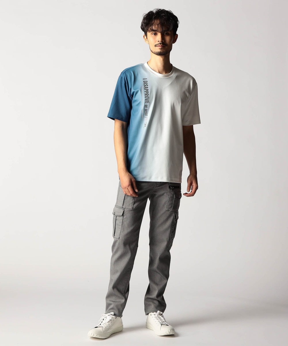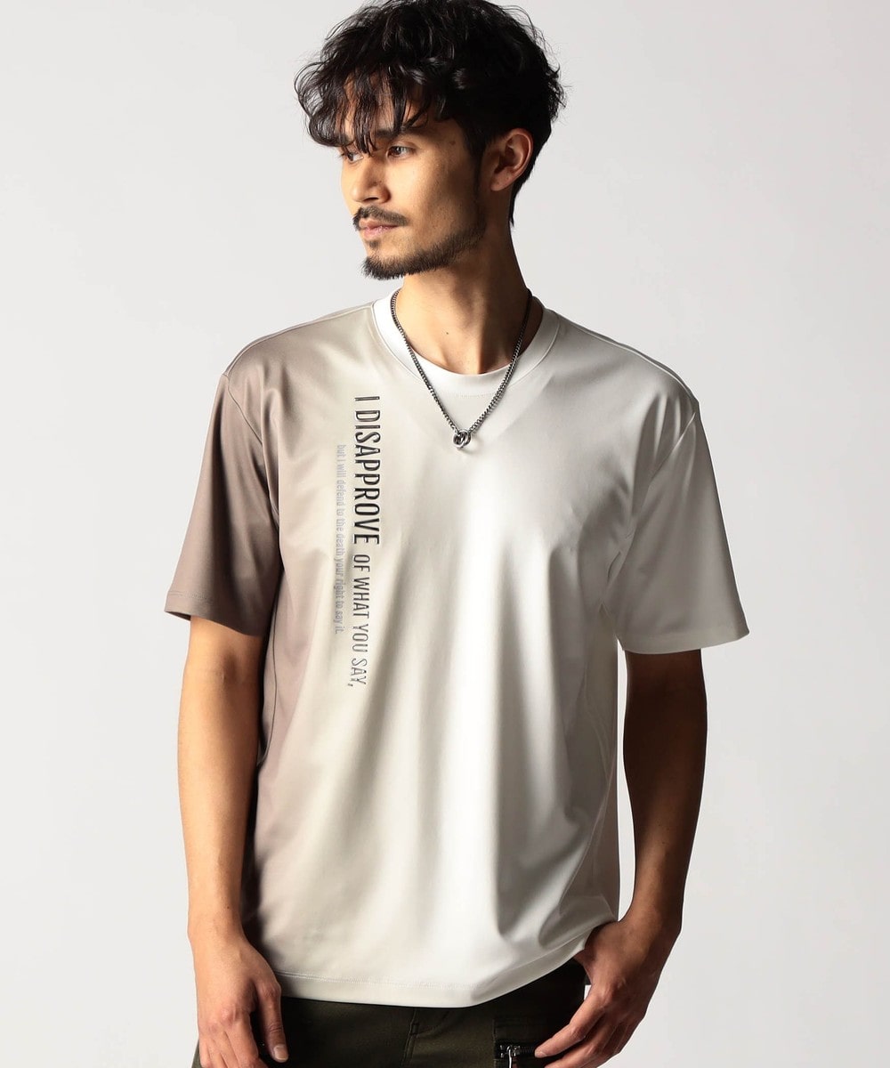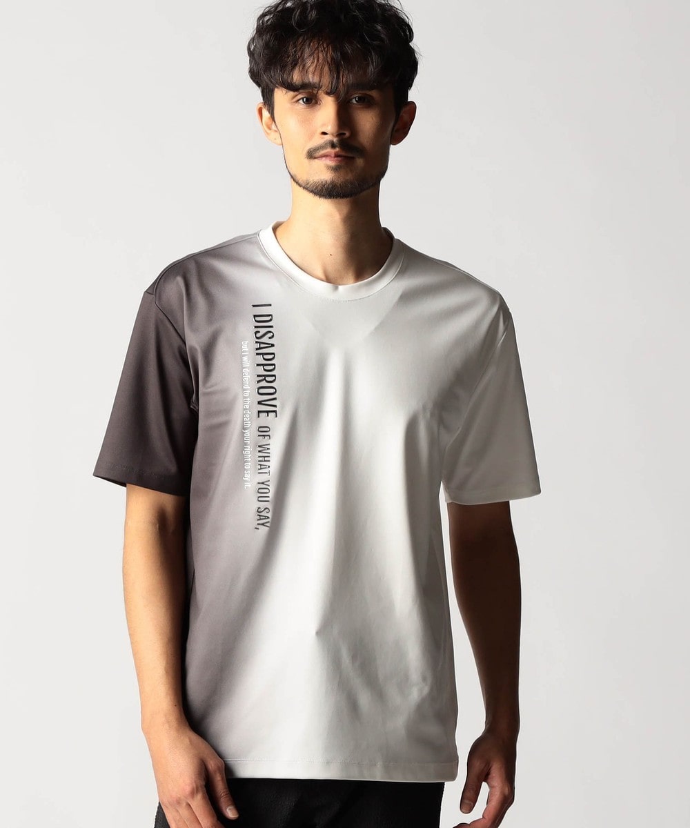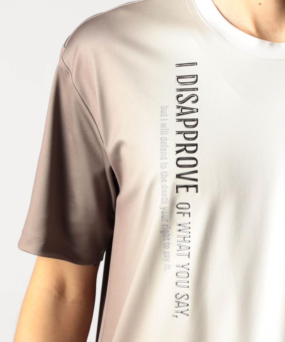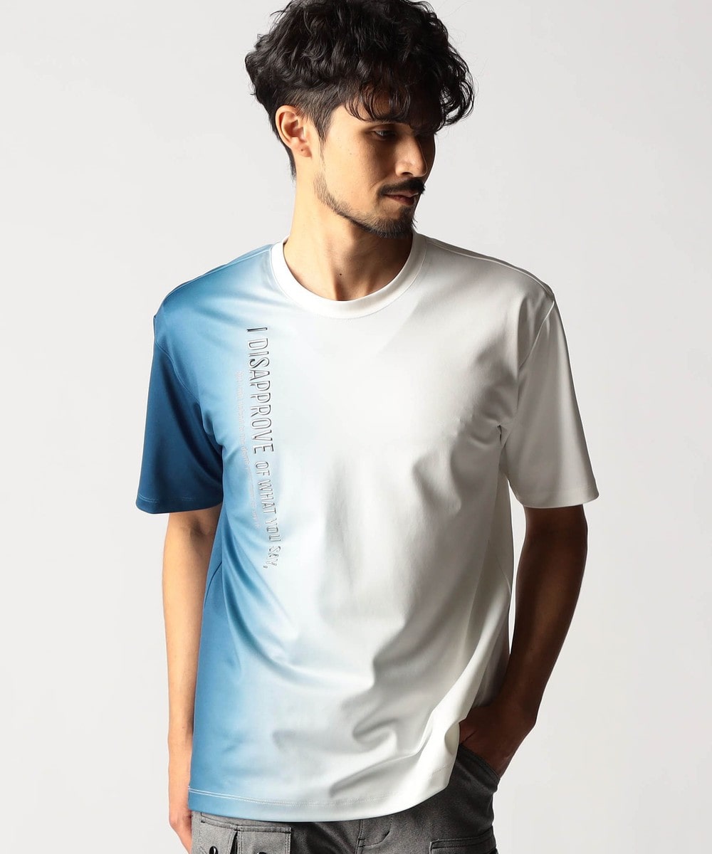 転写プリントで表現した奇麗なグラデーションが目を引くインパクト系Tシャツ。フロントの縦ロゴがシャープな印象です。ロゴ部分はメタルジェルと厚盛りラバープリントを使い分けアクセントにしています。伸縮性に優れたストレッチ素材を使用することで、動きを妨げない快適な着心地を感じていただけます。