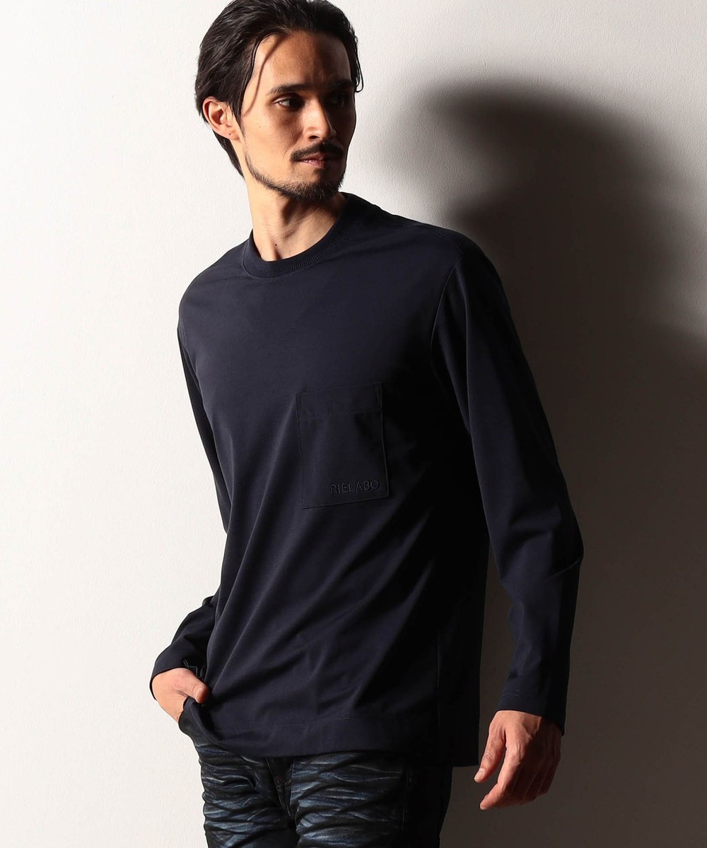 【RIELABO】シルク混ストレッチスムースクルーネックプルオーバー