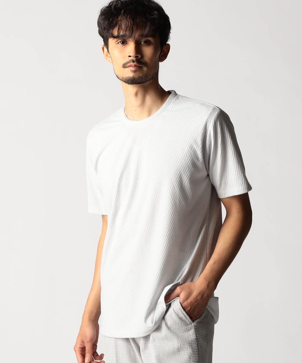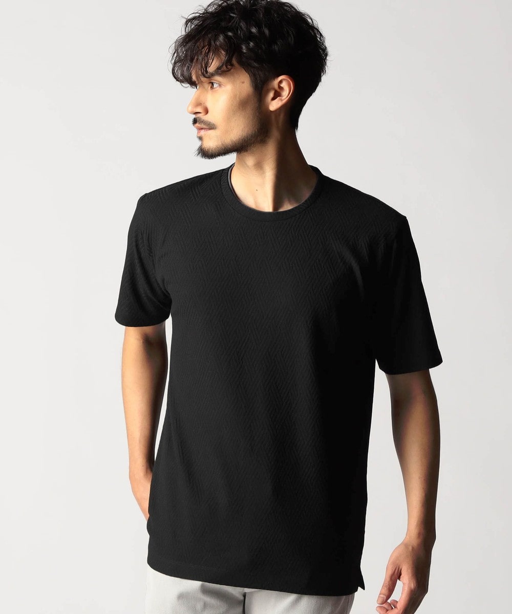 仕立て映えする張り感で高級感をプラスし クルーネックの別布フェイクレイヤードデザインで大人受けする上質なカットソ-に仕上げました。セットアップのインナ-としても最適なアイテムです。
