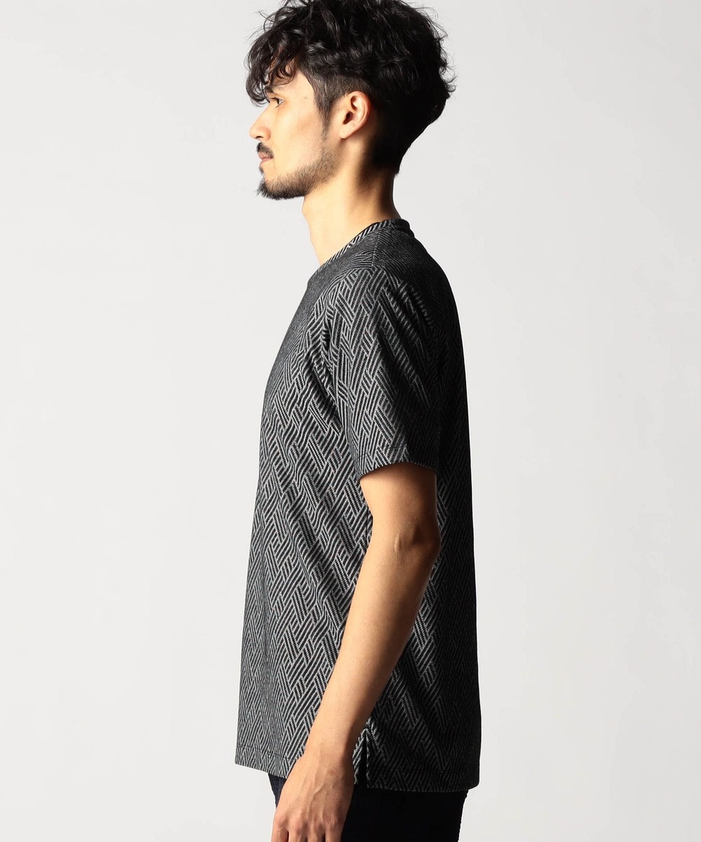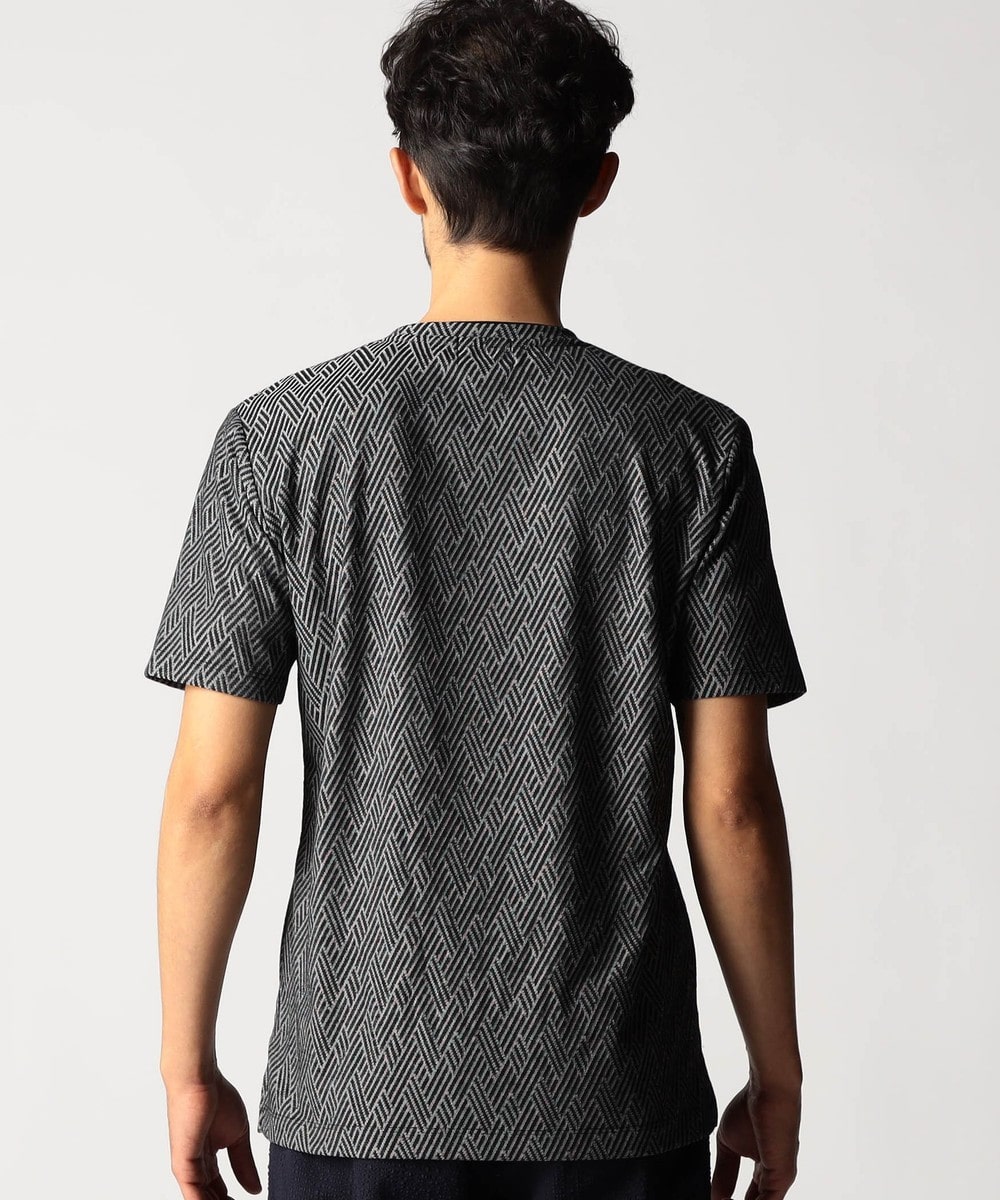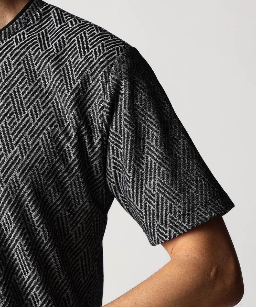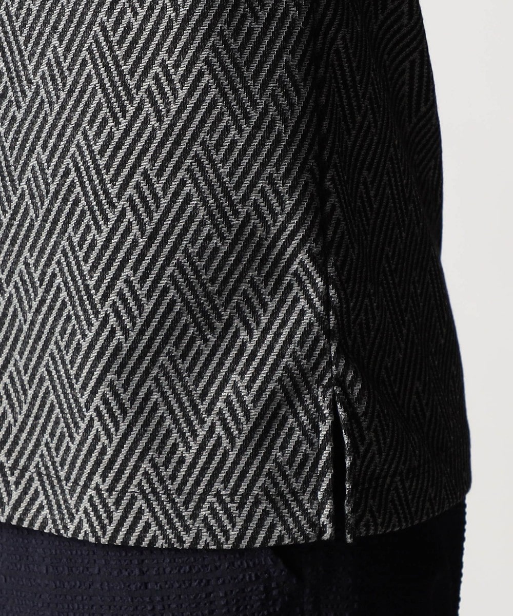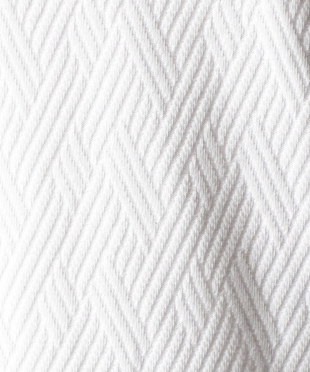 柄の凸部分にコットン、凹部分にポリエステル糸を使用して編み立てた中肉素材のリンクスジャカ-ド。バスケット柄風の独特な表面感とソリッドな陰影感があり、ブラックxオフのように染め分けられるのも特徴です。