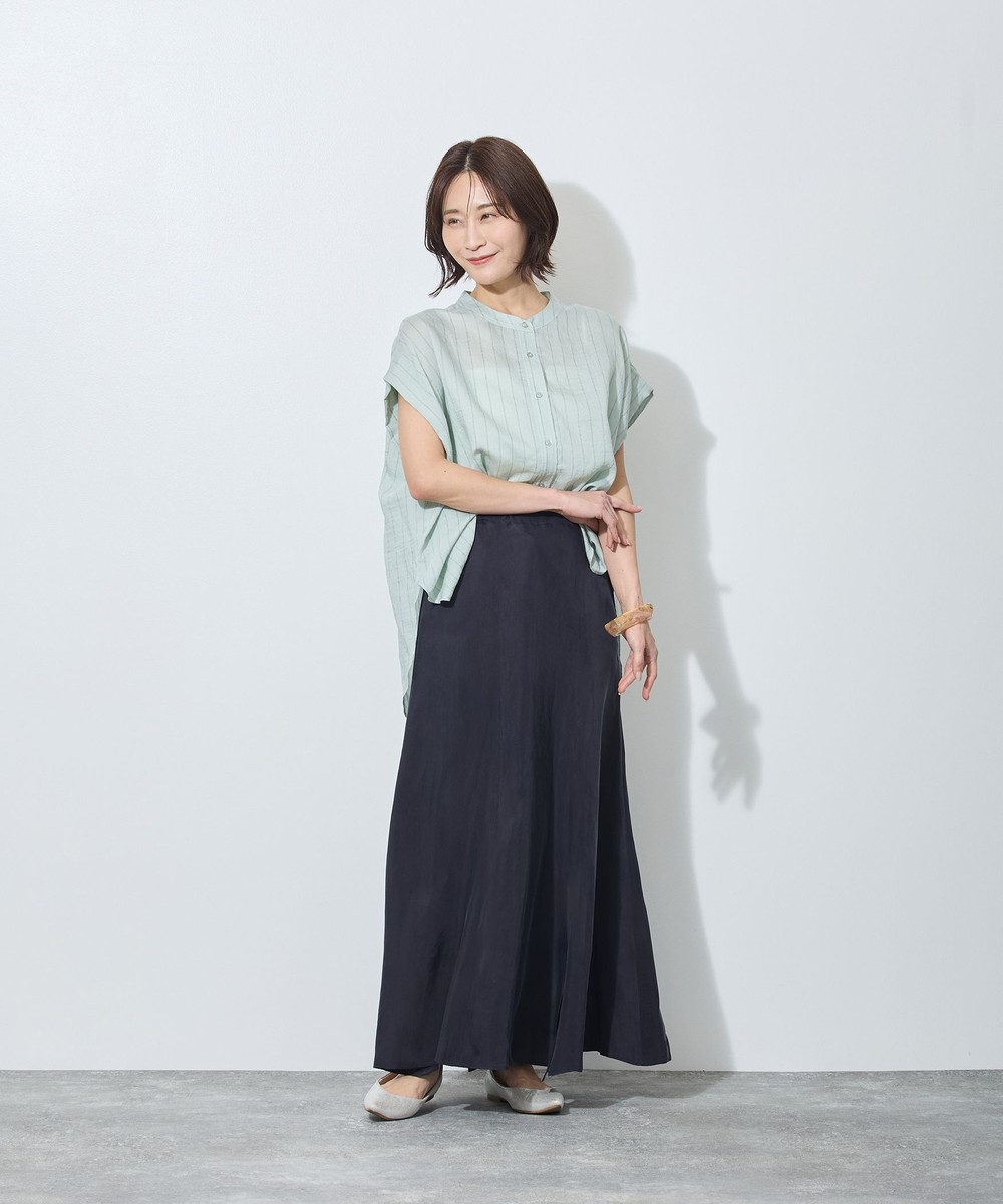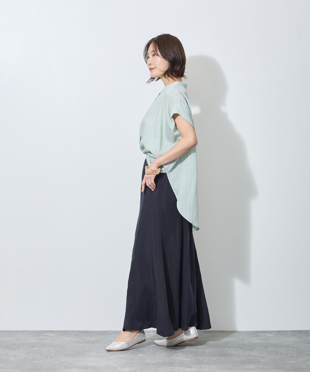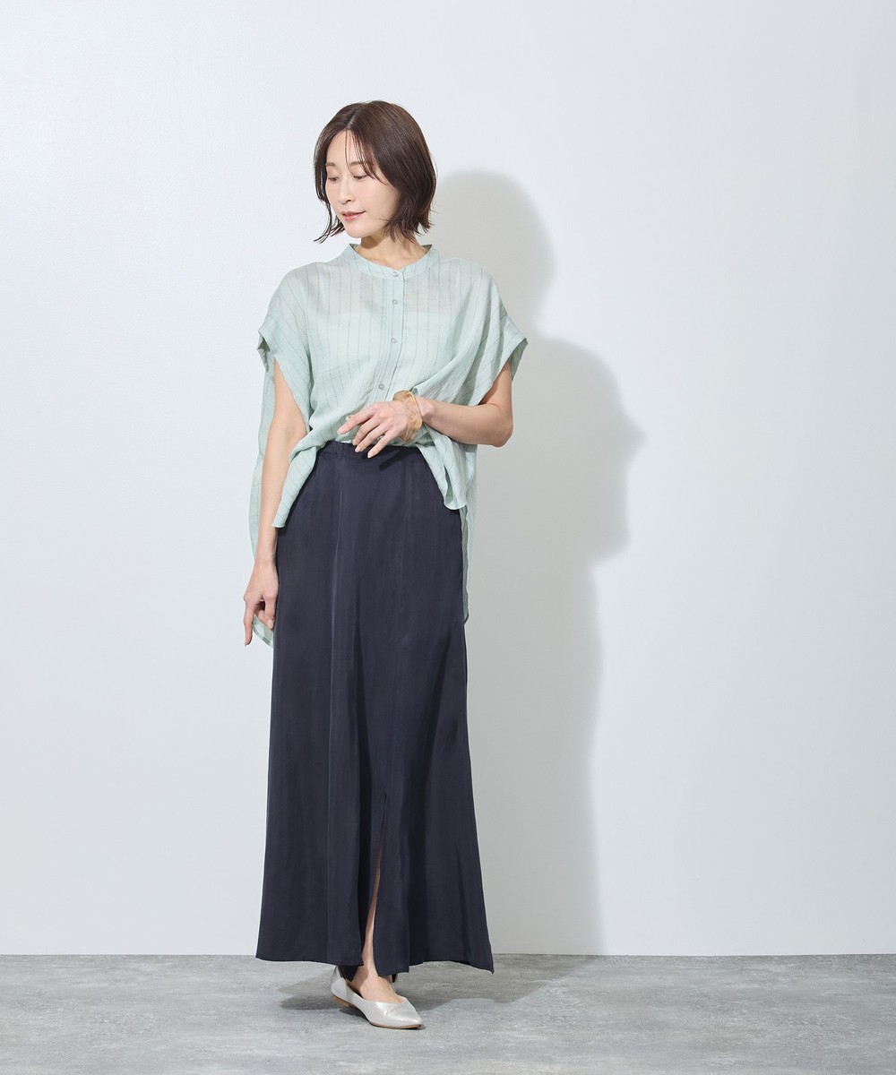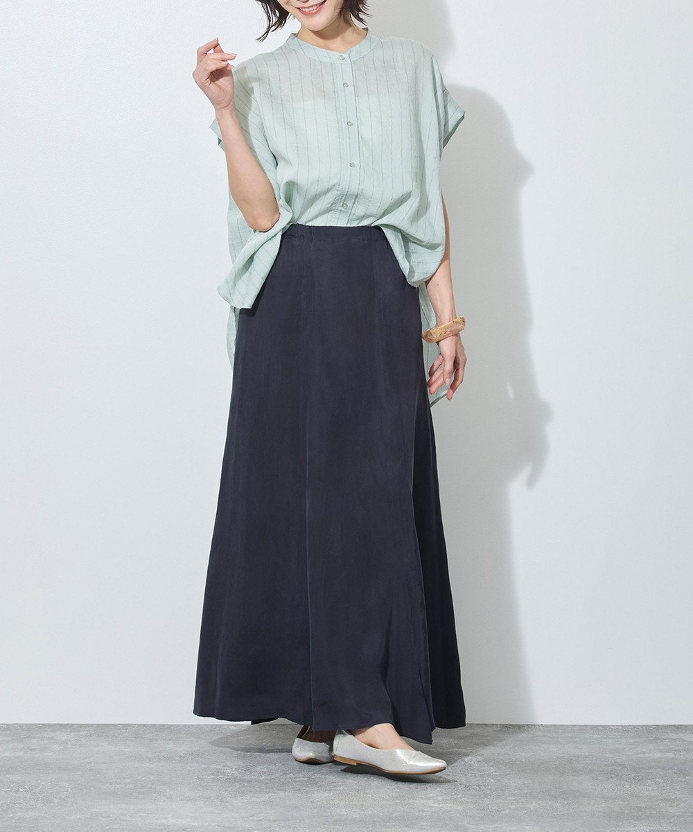 シンプルで大人な雰囲気を楽しめる、揺れるような落ち感のマーメードスカート。