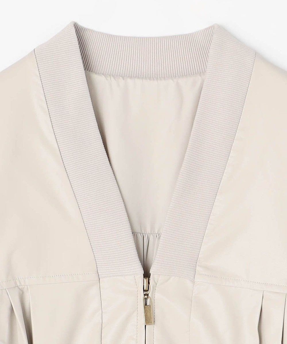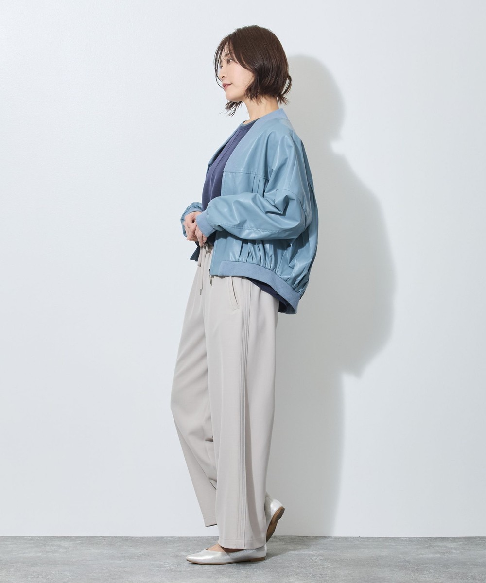 襟・裾・袖口のリブ素材の切替えが、ハードになりすぎず良いアクセントになっています。