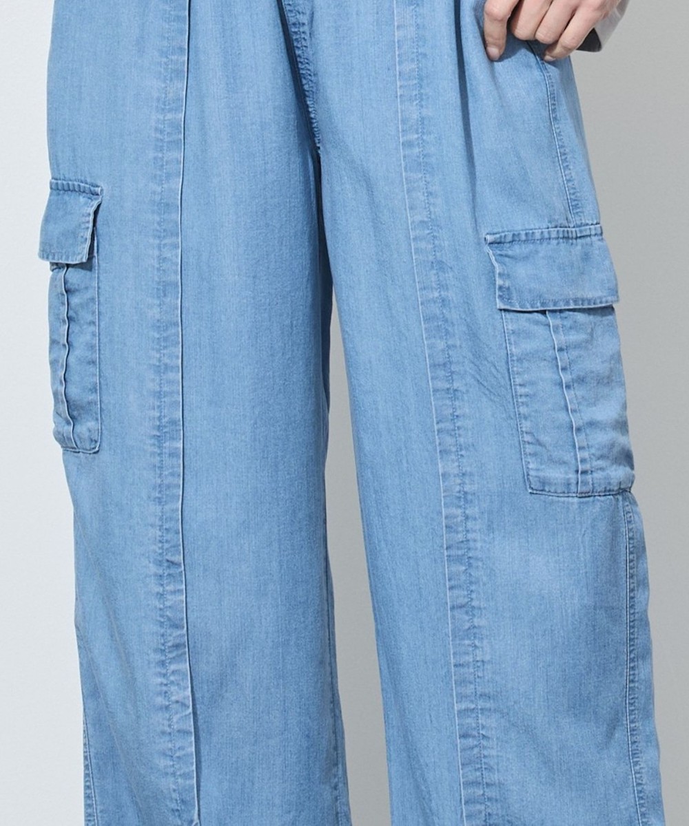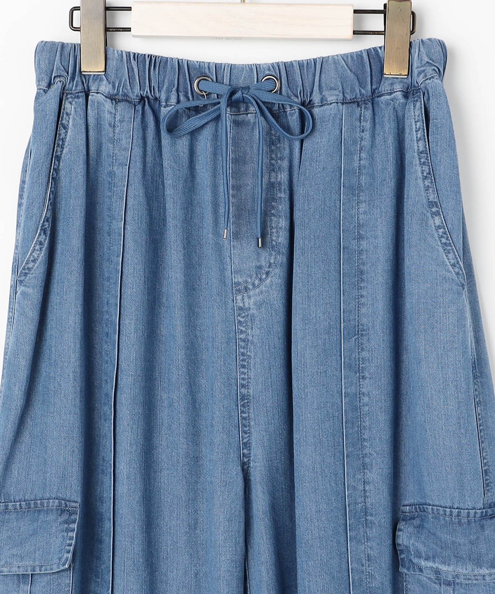 柔らかい薄手のデニムで、ウエストはゴム仕様になっており、リラックスした履き心地が特徴です。