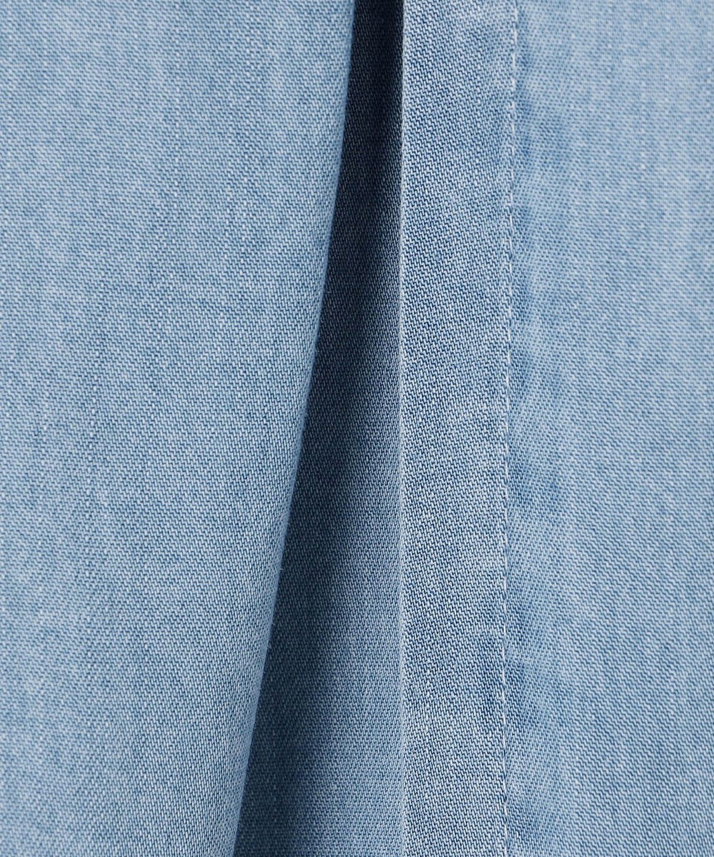 通常のデニムと違い、薄地で柔らかさと滑らかさが特徴の再生繊維100%使用