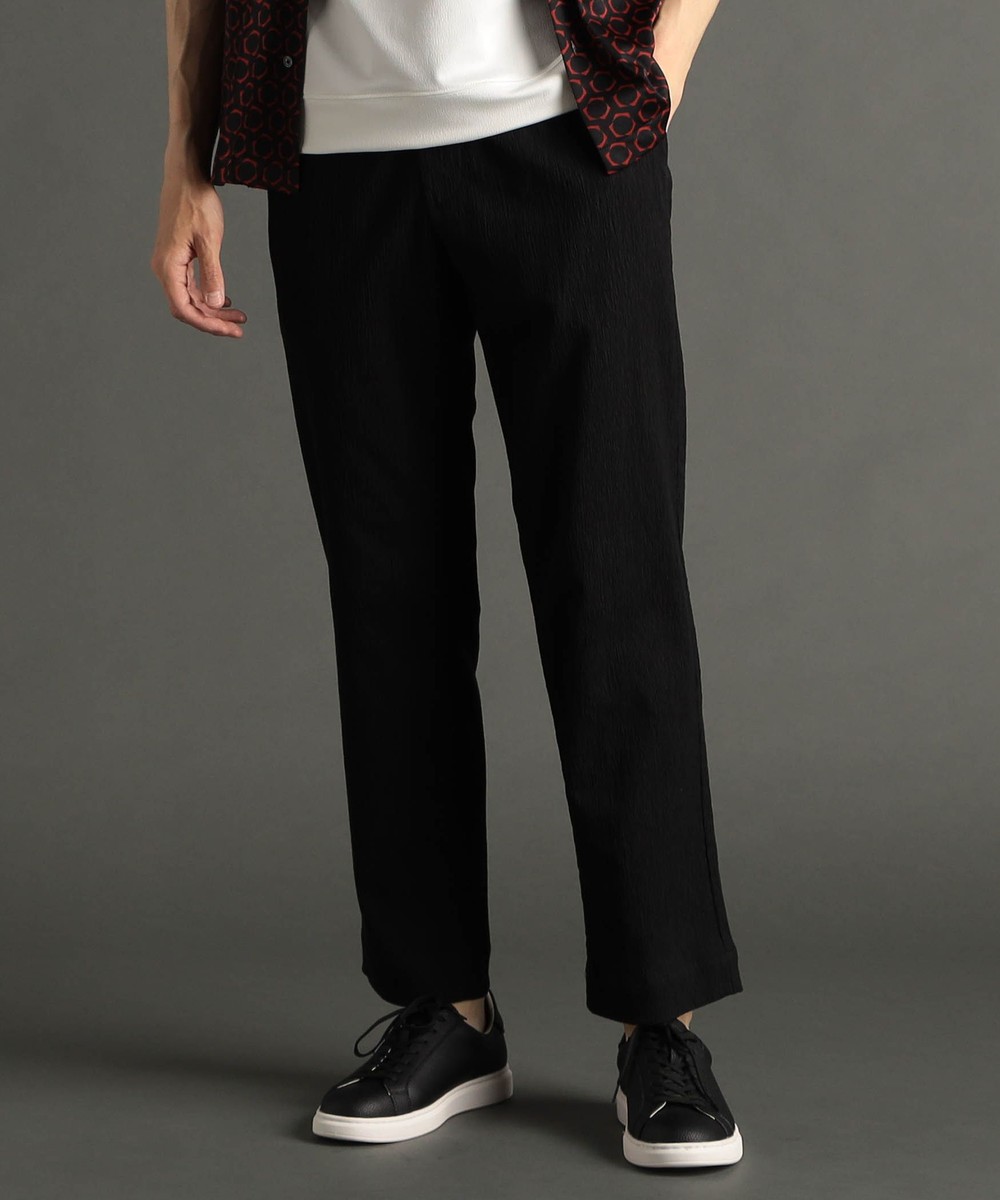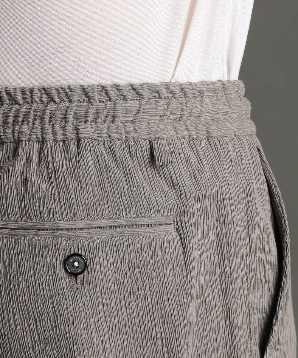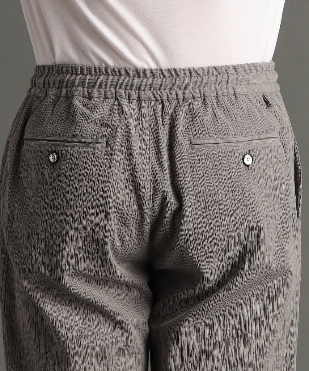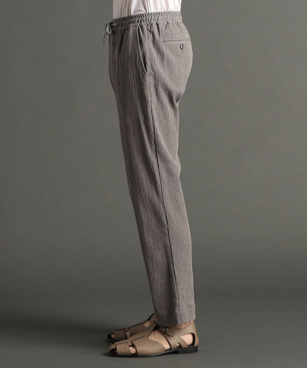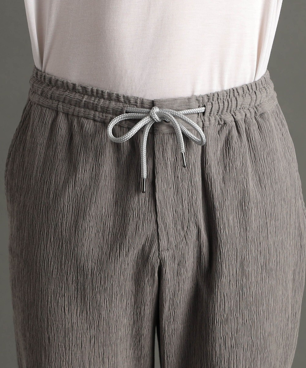 ウエストシャーリング&ドローコードでゆとりあるウエストラインから緩やかにテーパード。程よくドレープし、大人のリラックスシーンを演出。