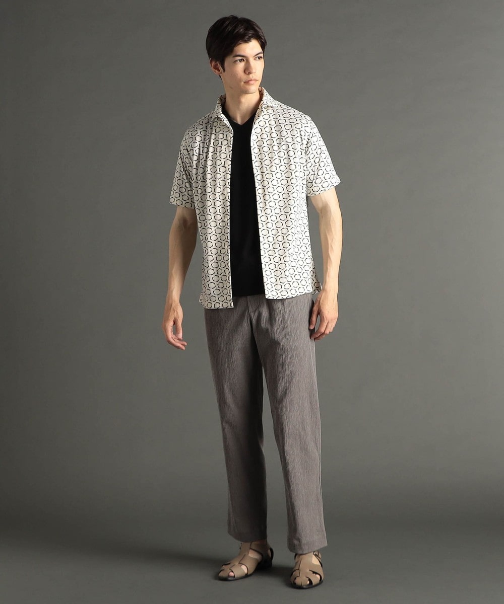 縦方向に綺麗なシボ感を出した楊柳仕上げで程よいドレープ感と抜群のストレッチ感を兼ね備えた素材。