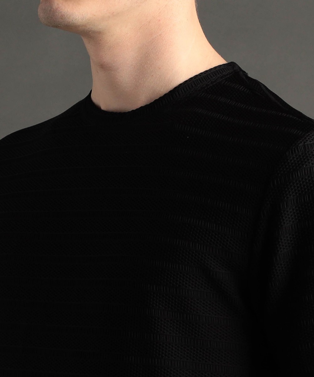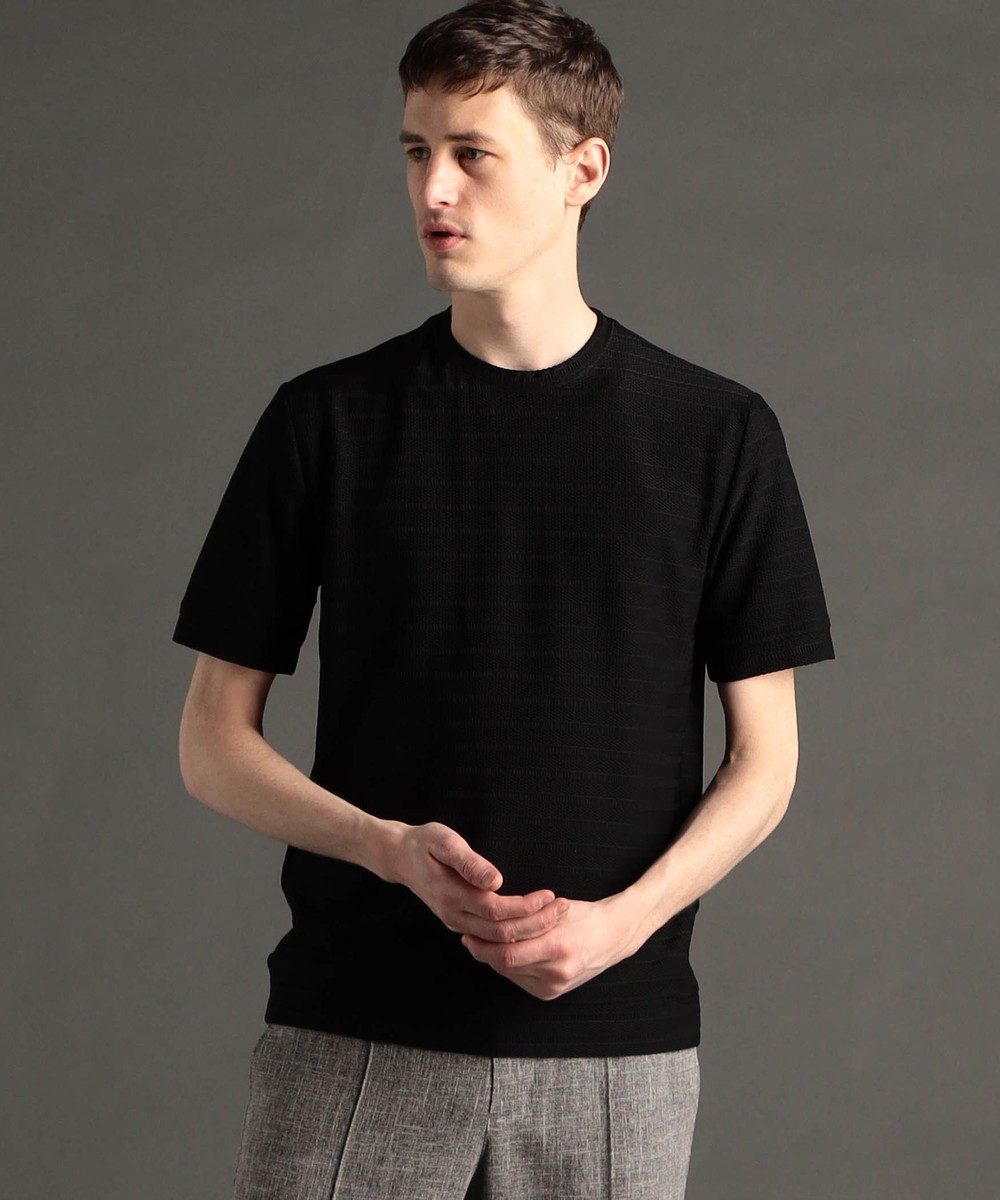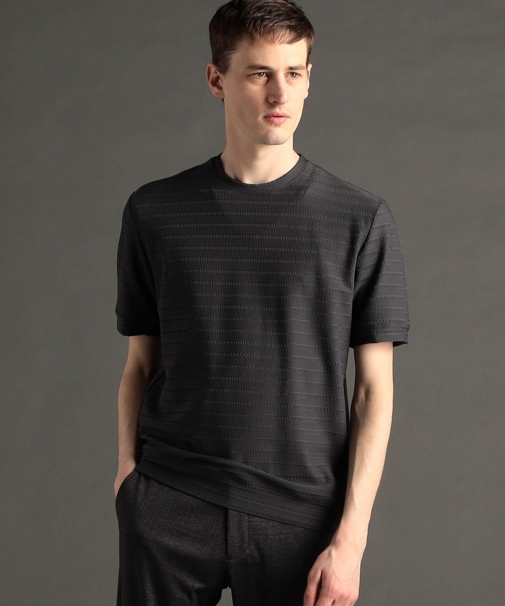 ボーダーハニカムメッシュ クルーネックTシャツ