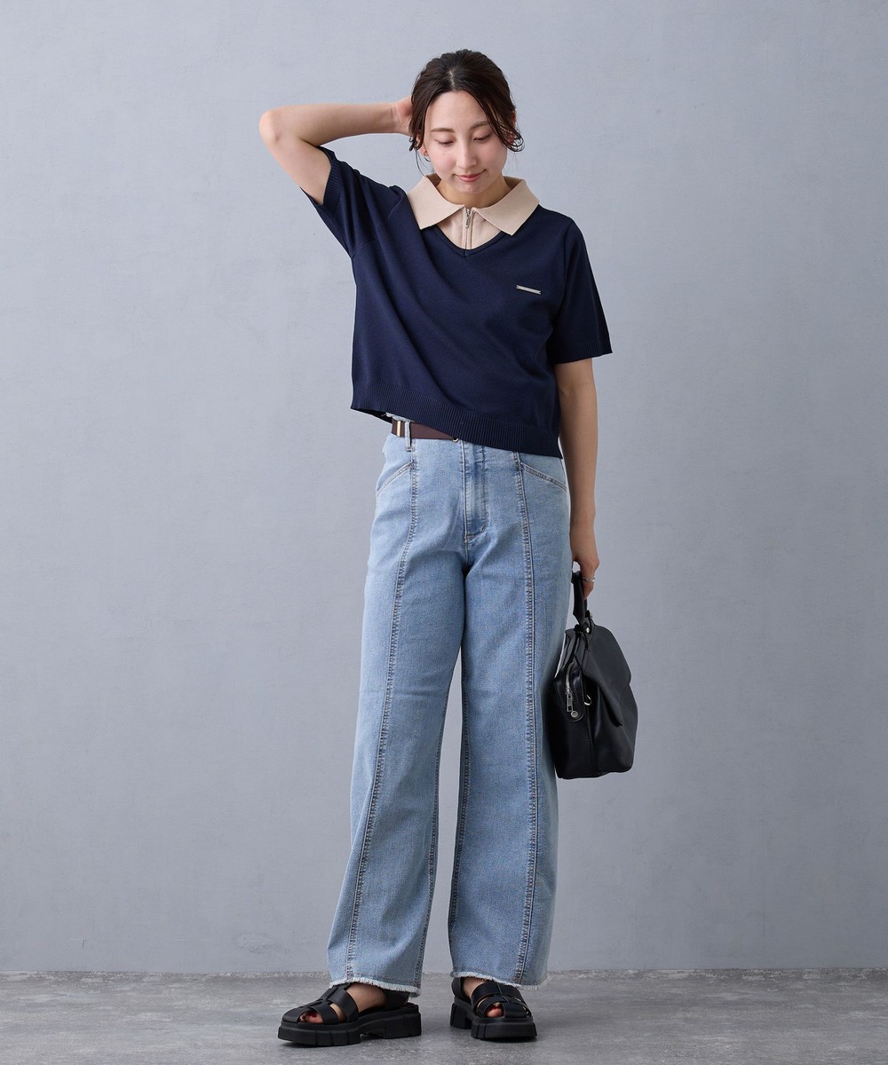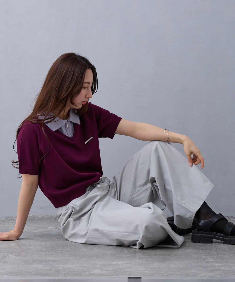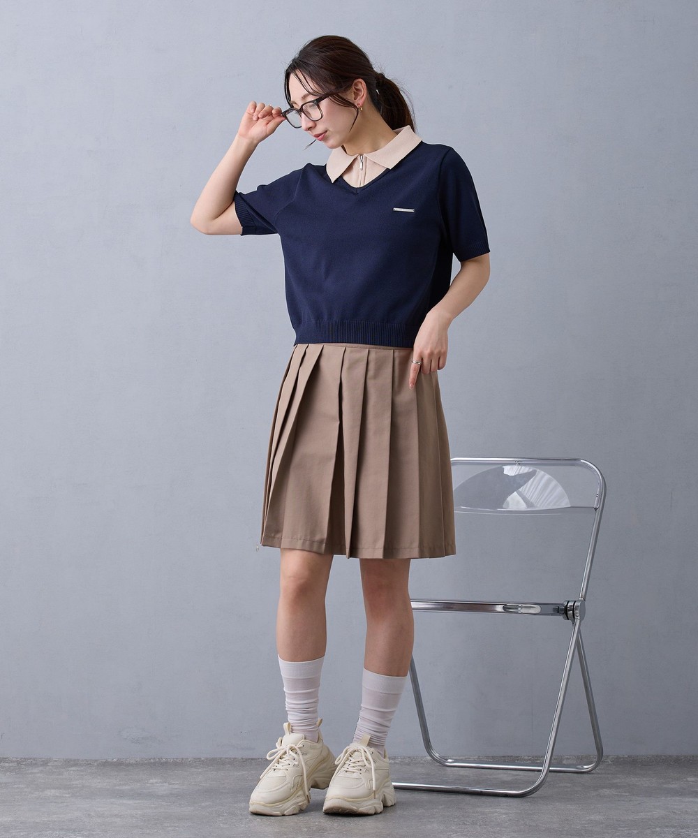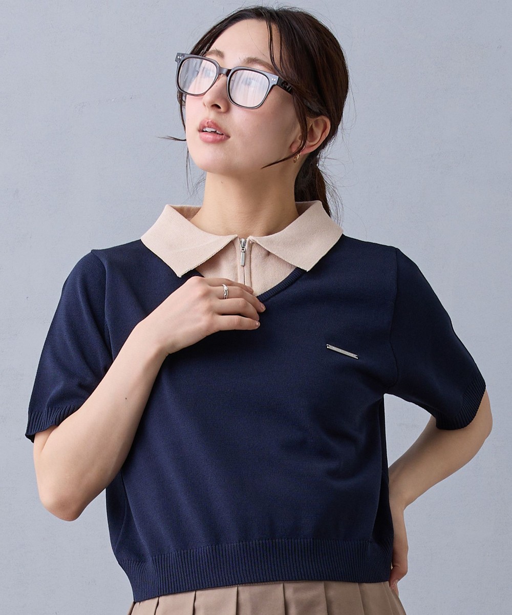 トレンドのレイヤード風デザインがジップ明きニットポロになって新登場!