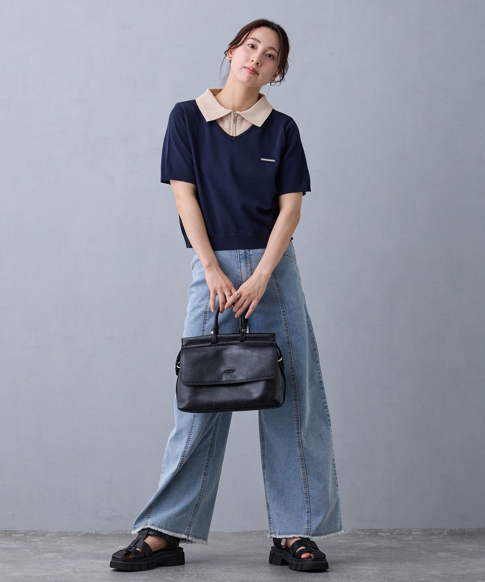 一枚で重ね着をしているような配色デザインがコーディネートのアクセントに◎