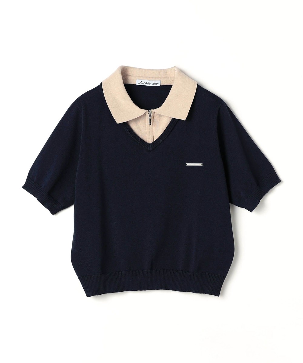 レイヤードカラージップポロシャツ