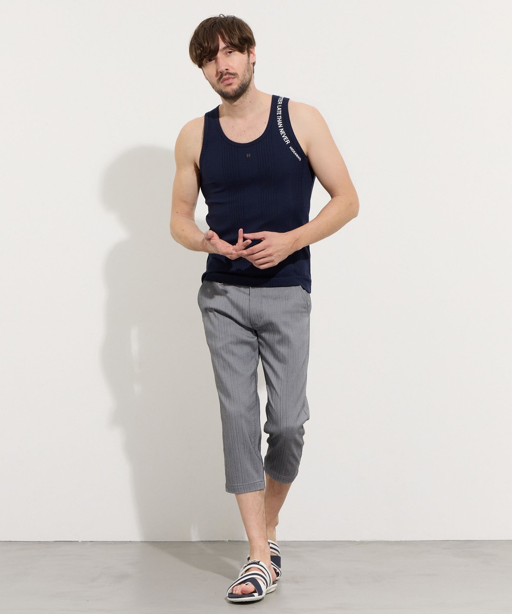 左アームホールと胸のロゴプリントがデザインポイントです。
