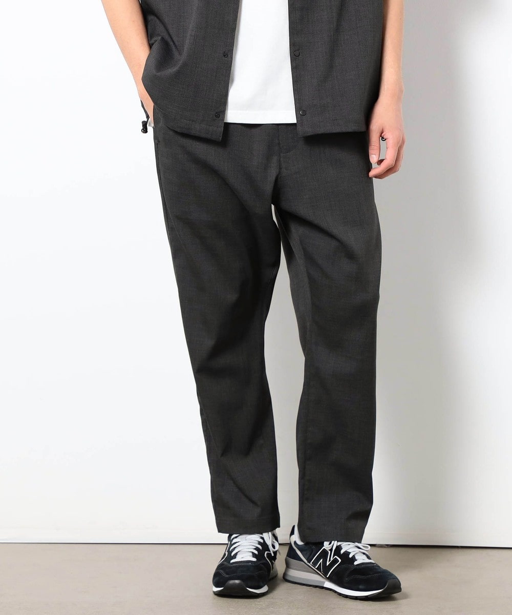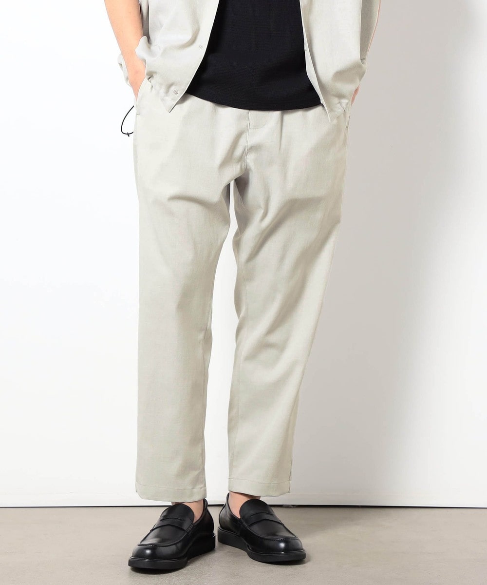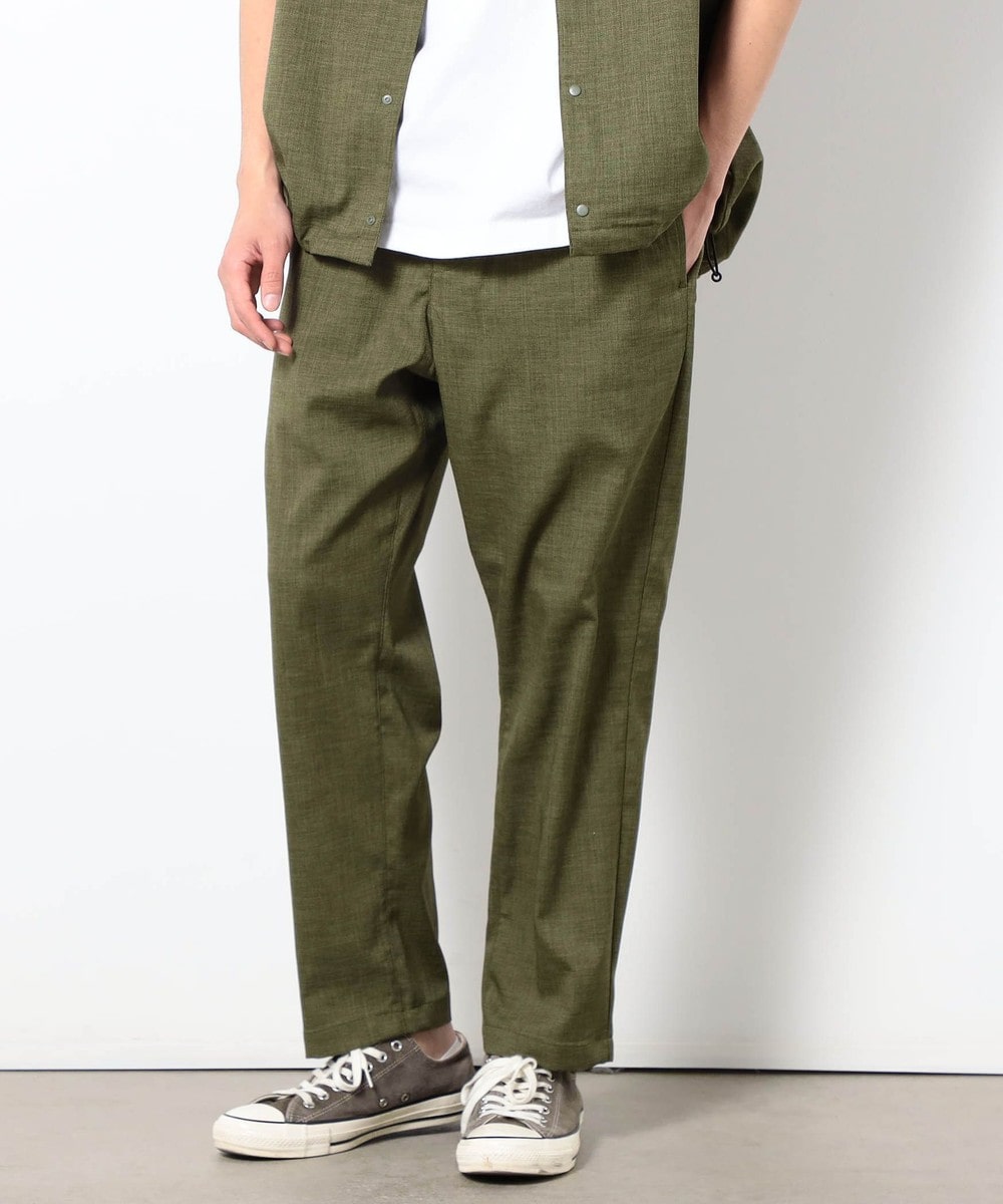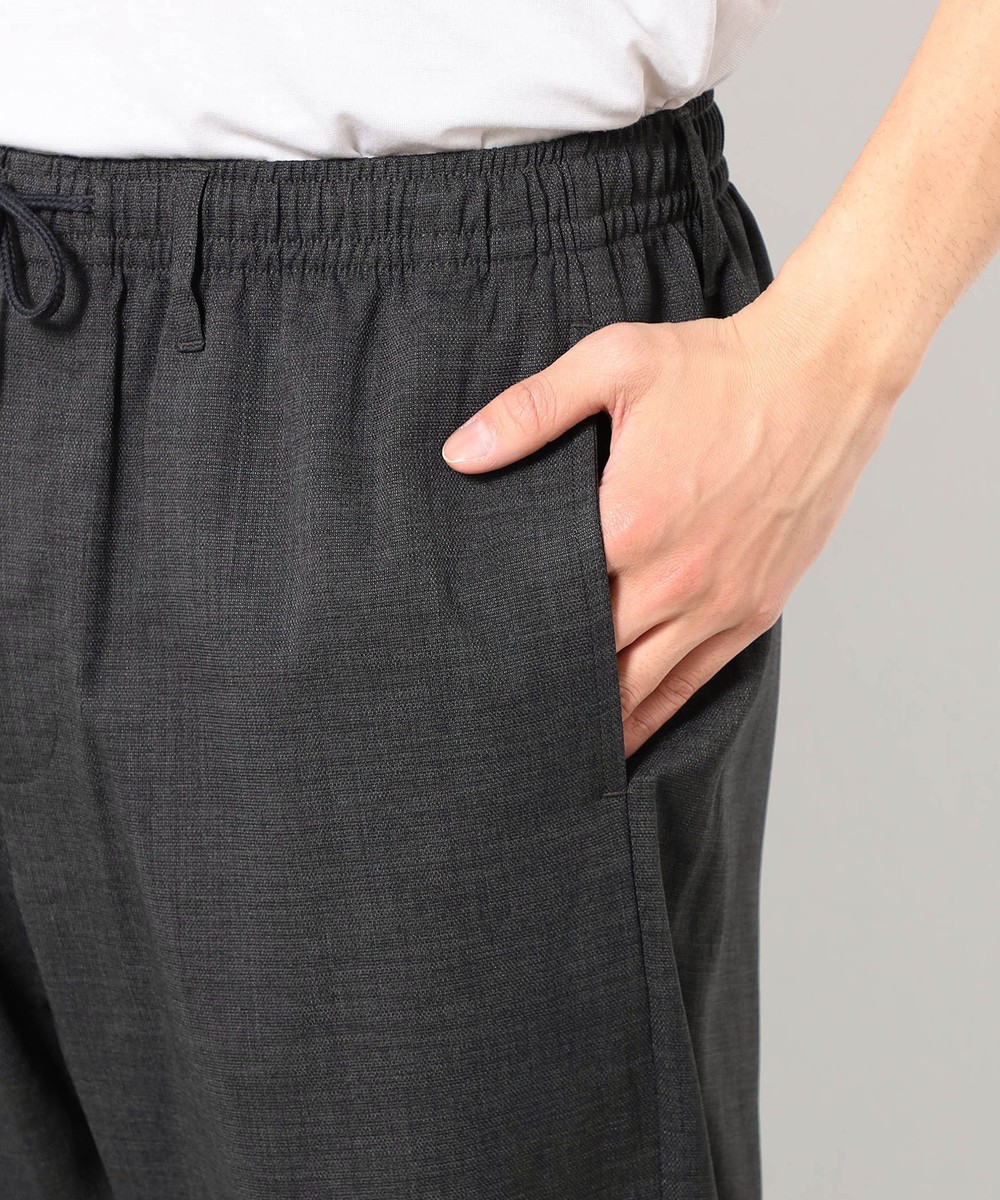 麻のような清涼感ある表面感と肌触りを、扱いやすいポリエステル素材で表現したリネンライクイージーパンツ。