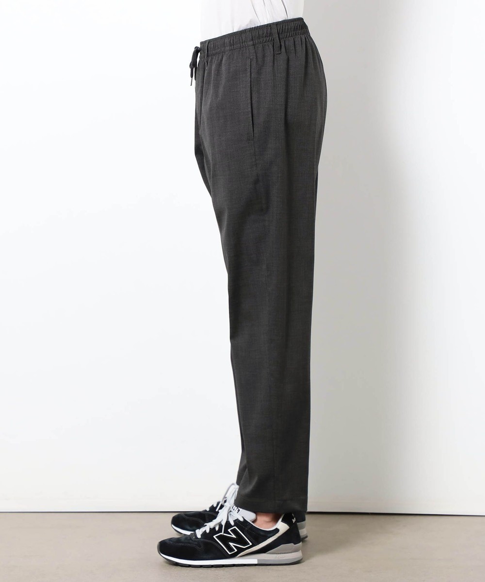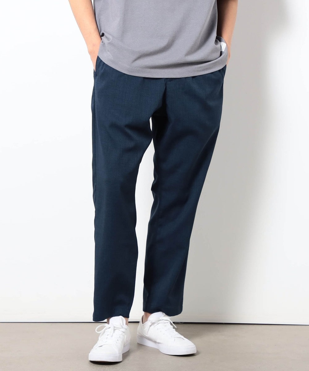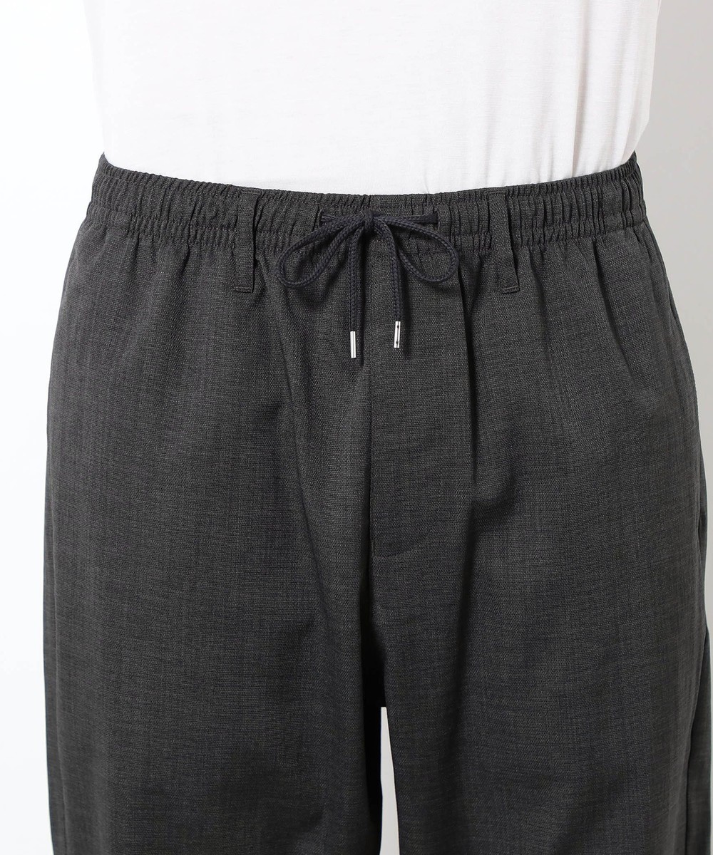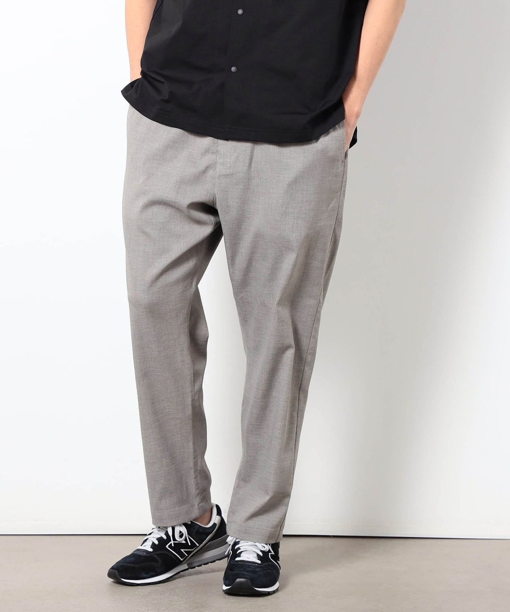麻のような清涼感ある表面感と肌触りを、扱いやすいポリエステル素材で表現したリネンライクイージーパンツ。
