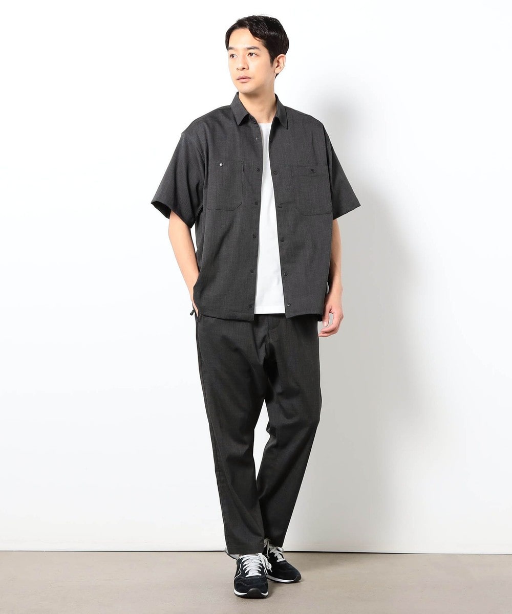 ・同素材の半袖シャツと合わせたセットアップコーディネート