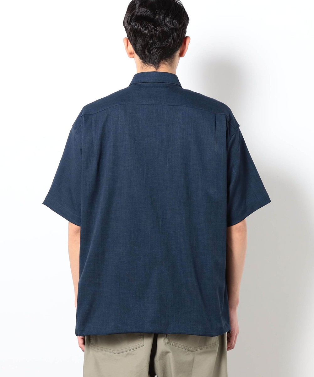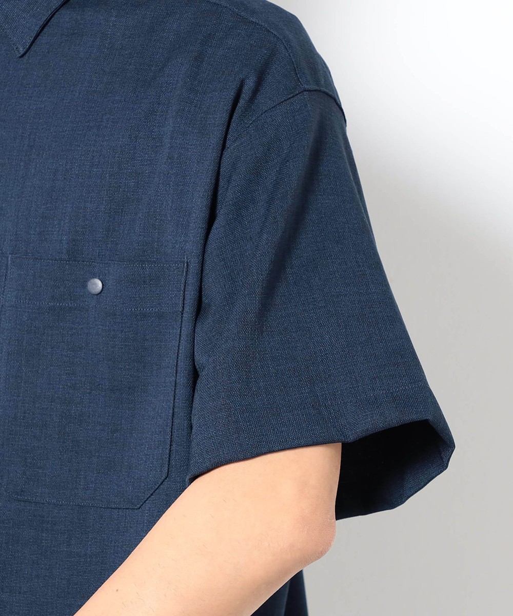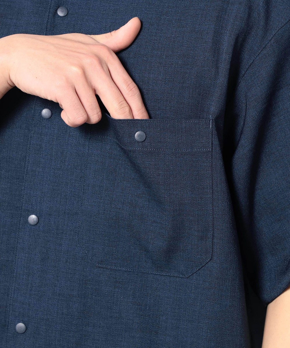 麻のような清涼感ある表面感と肌触りを、扱いやすいポリエステル素材で表現したリネンライク半袖シャツ。