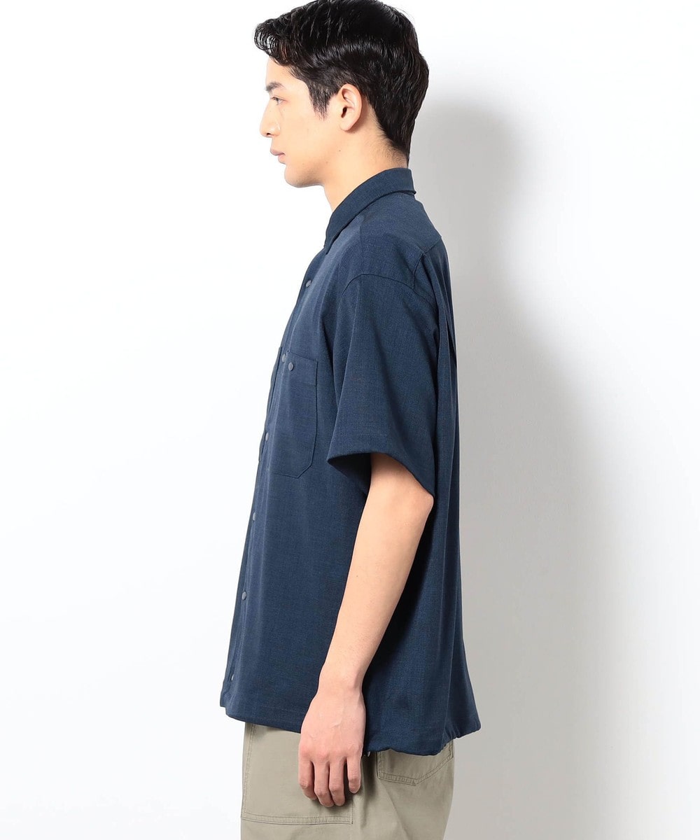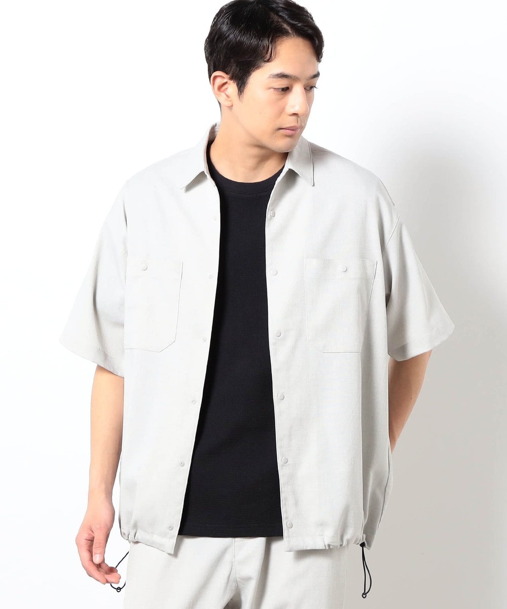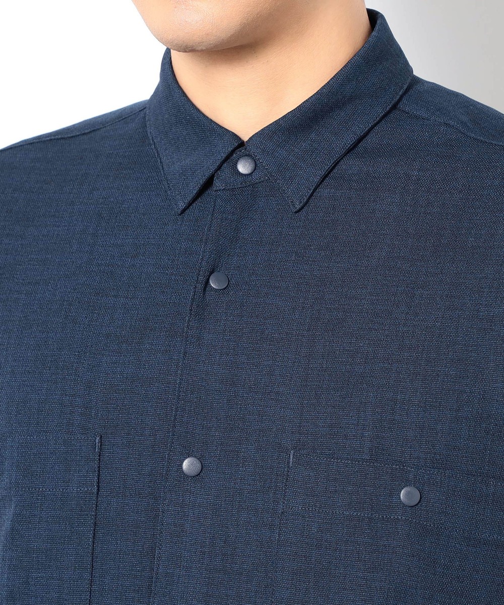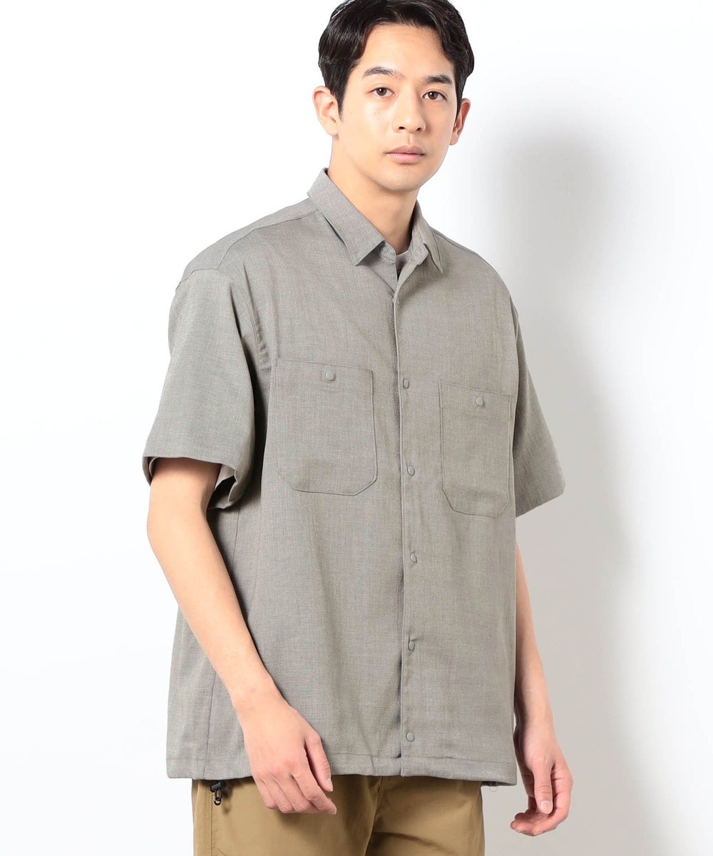 麻のような清涼感ある表面感と肌触りを、扱いやすいポリエステル素材で表現したリネンライク半袖シャツ。