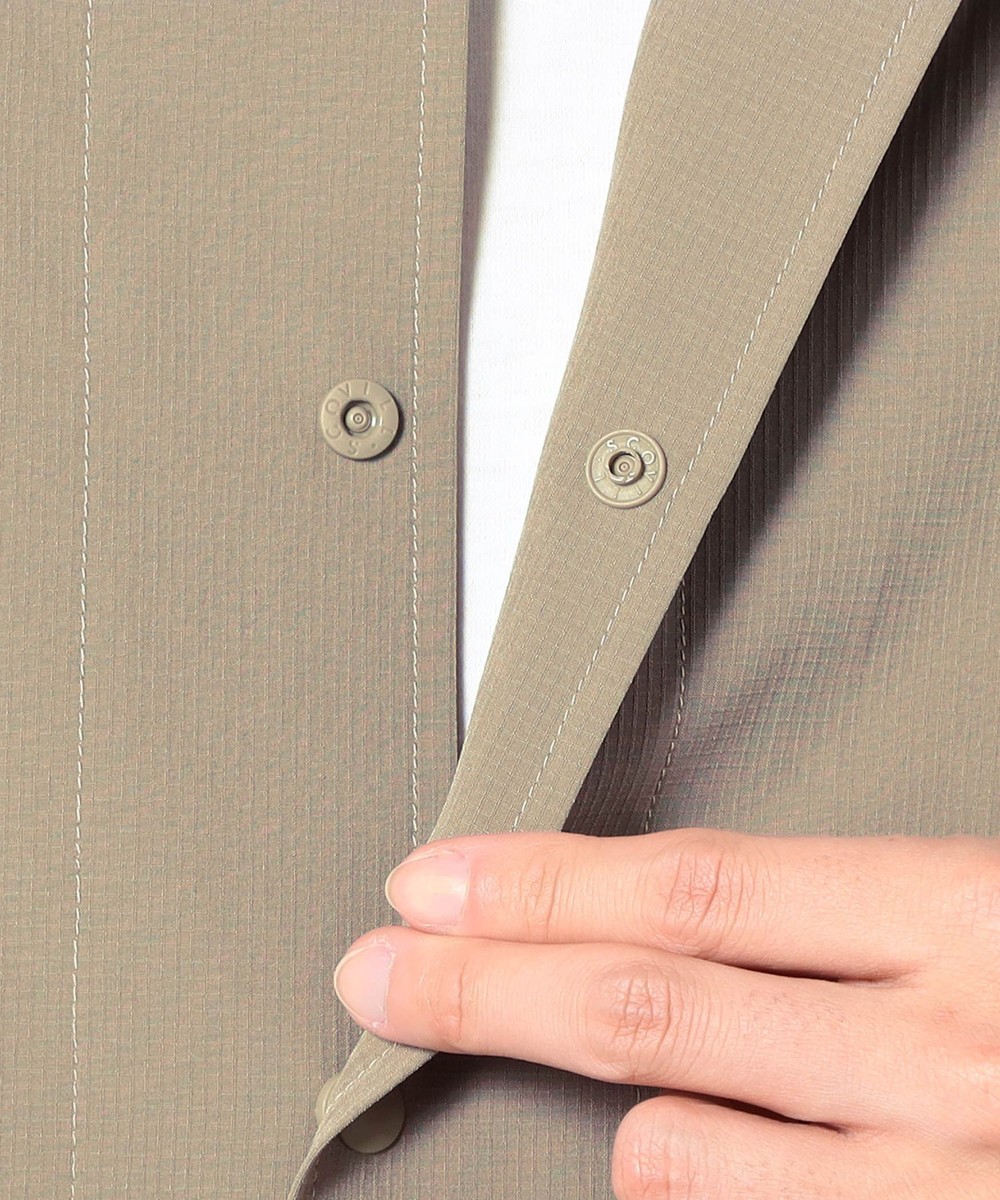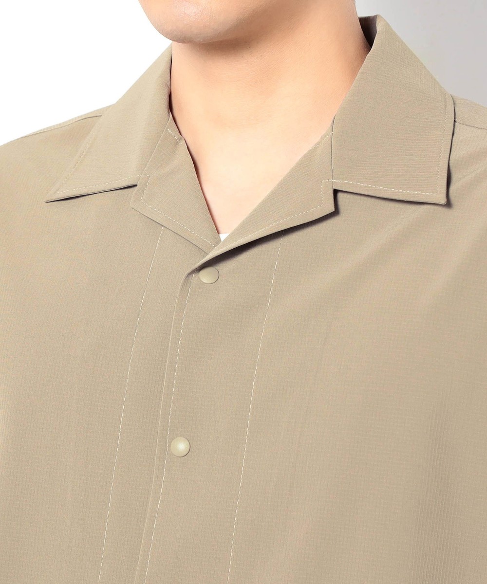 強度の高いリップストップ素材を使用した、夏らしいオープンカラーシャツ。