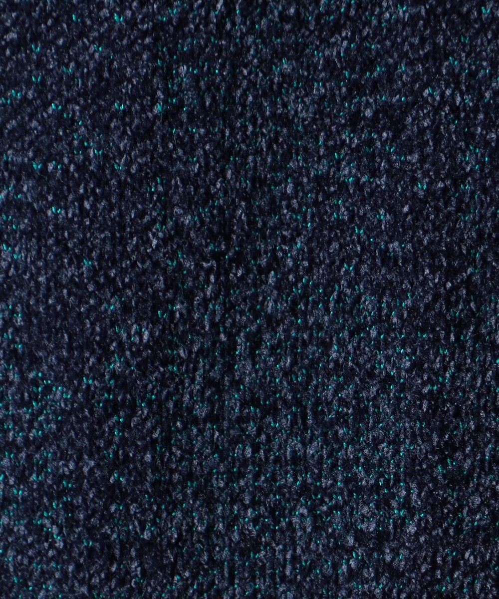 裏面には高収縮ポリエステル糸を使用し 表面にはモール糸とブライト糸を使用したダブルジャカードニット。通常モール糸のみの場合はニットが重くなりダレやすくなってしまう所 裏面にポリエステルを入れる事でダレを軽減し軽量で仕立て映えするハリのあるニットに仕上げています。