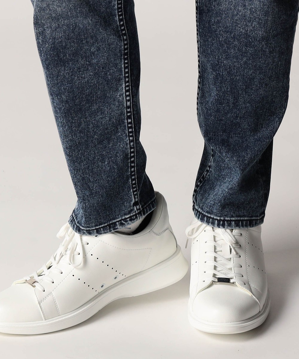 膝から裾口にかけて少しストレートなシルエットに設定、全体的には細身のサイズ感です。股下は8分丈で、裾上げしなくてもそのまま履ける設定にしています。