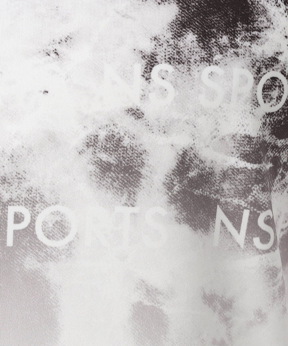 09ホワイト、67ネイビー: プリントは昇華転写で生地の風合いを損ねることなく繊細に仕上げています。グラフィックはグラデーションを効かせたタイダイ風のムラ柄に、シャープなフォントのロゴを組み合わせたアイキャッチ系。カスレやボカシで奥行き感を出したムラ柄とロゴのコラージュ柄が目を引く仕上りです。