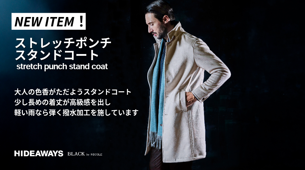 さて今回の新作商品ご紹介は、ハイダウェイで不動の人気を誇るスタンドコートです