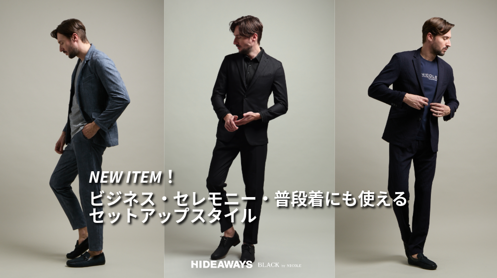 さて今回の新作商品ご紹介は、さまざまなシーンで活躍すること間違いなしのセットアップスーツです