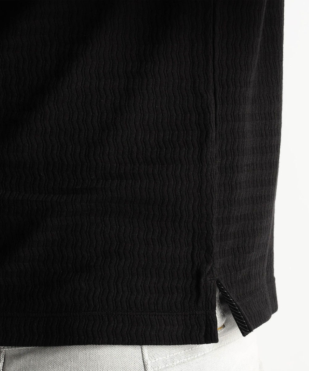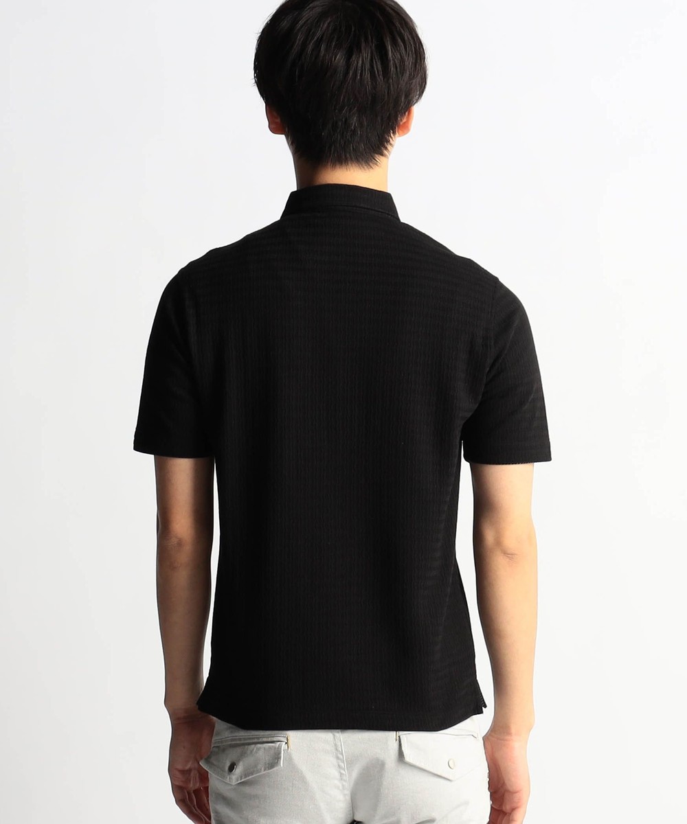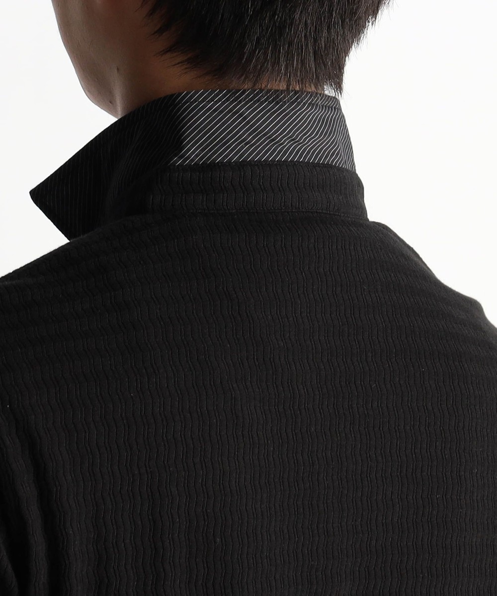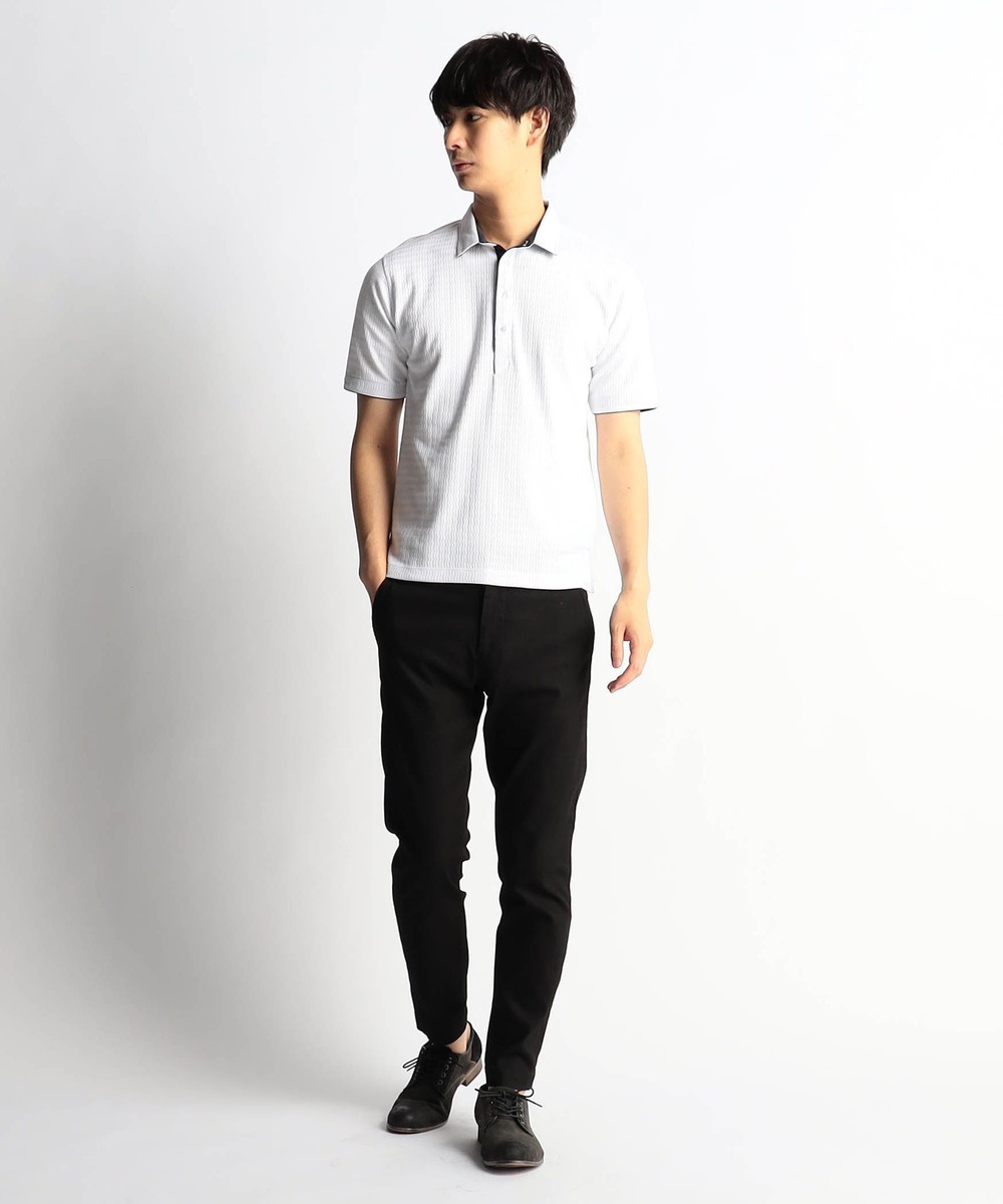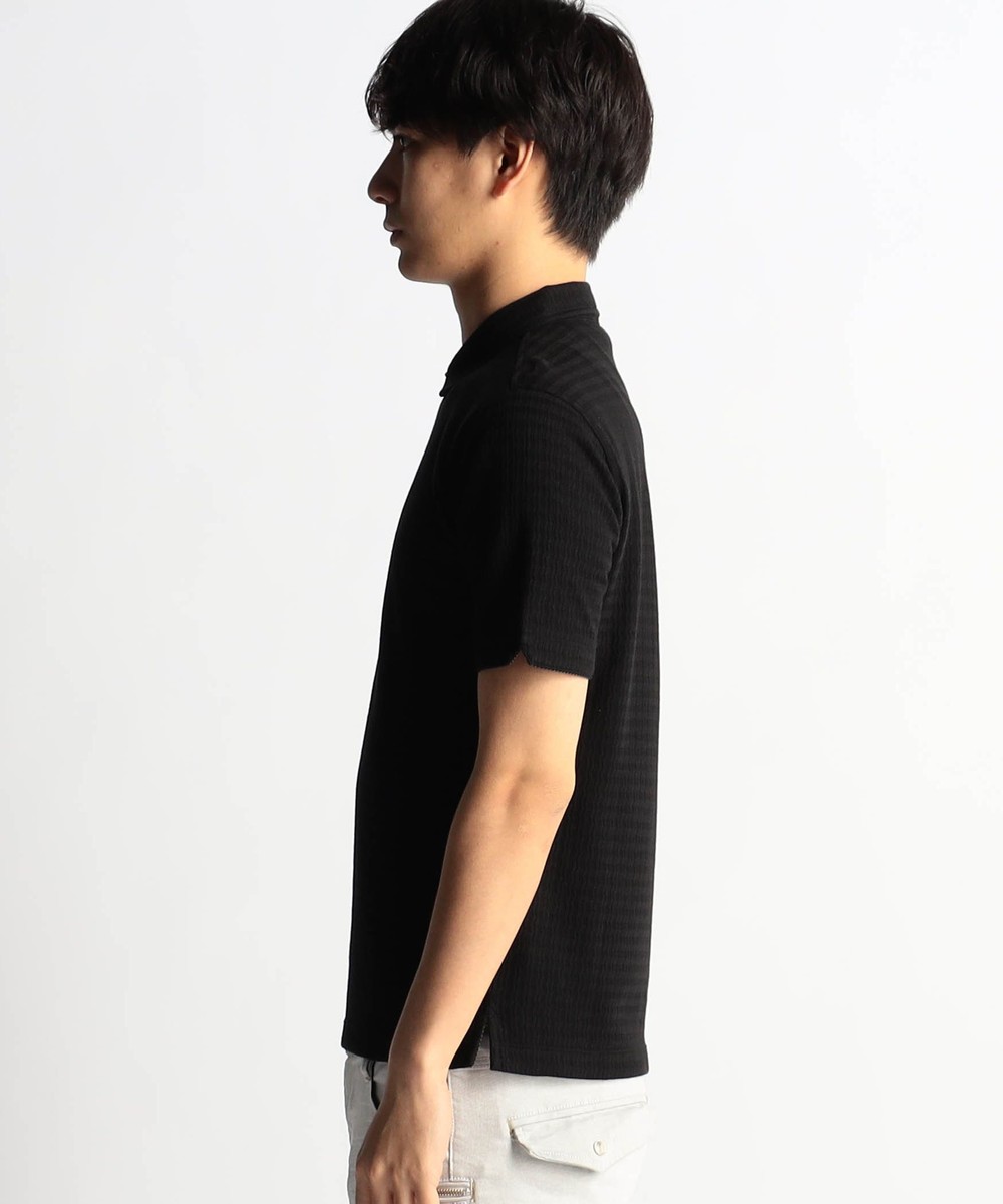 要所の別生地にはストライプを使い上品なギミックをプラスしました。袖口、裾のサイドスリット等、ワンランク上の仕様を随所に盛り込んだポロシャツに仕上げています。