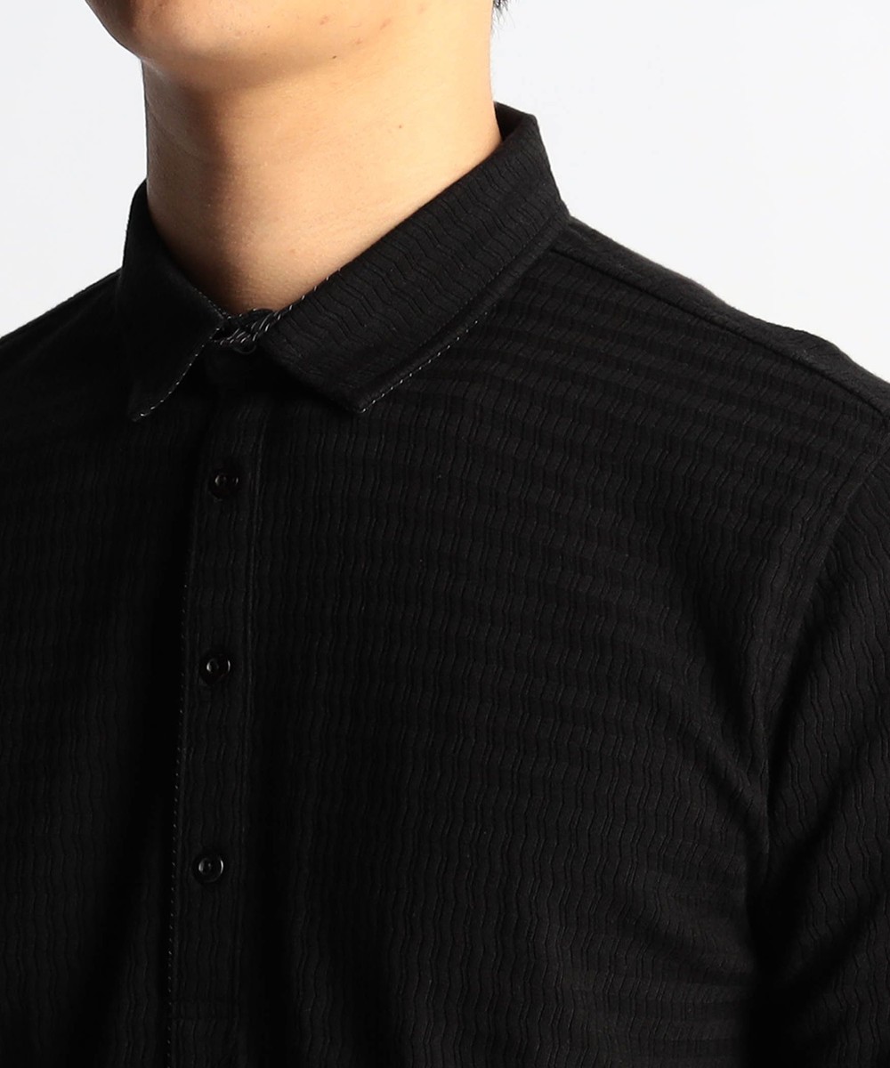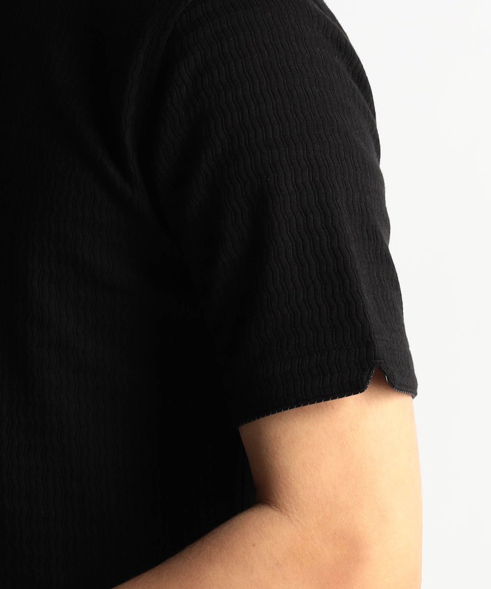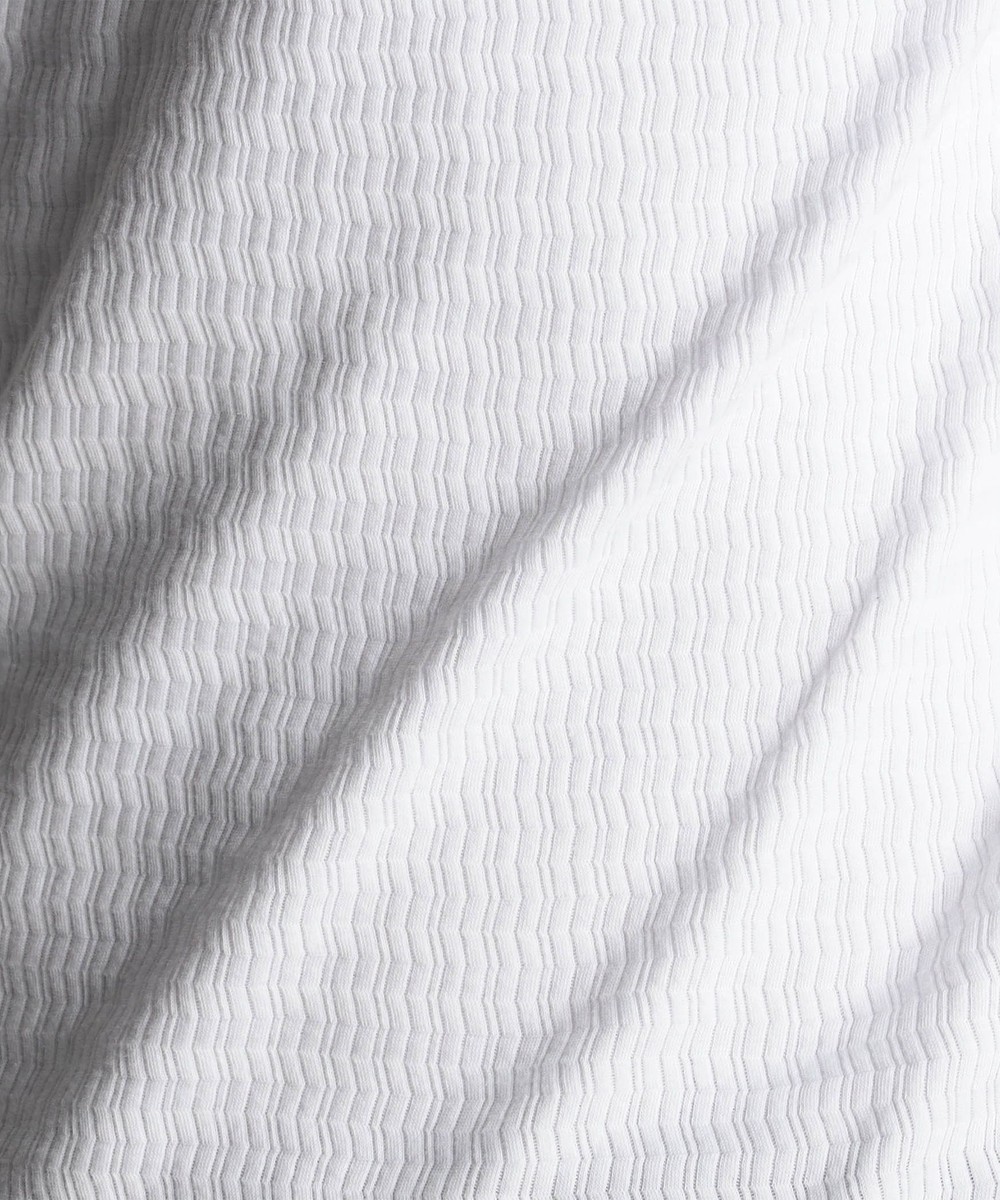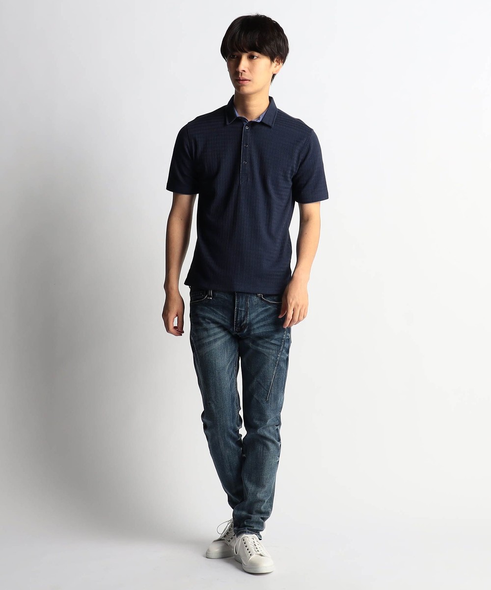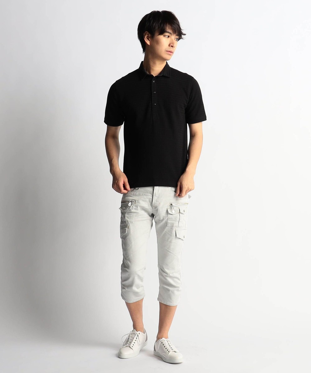 要所の別生地にはストライプを使い上品なギミックをプラスしました。袖口、裾のサイドスリット等、ワンランク上の仕様を随所に盛り込んだポロシャツに仕上げています。