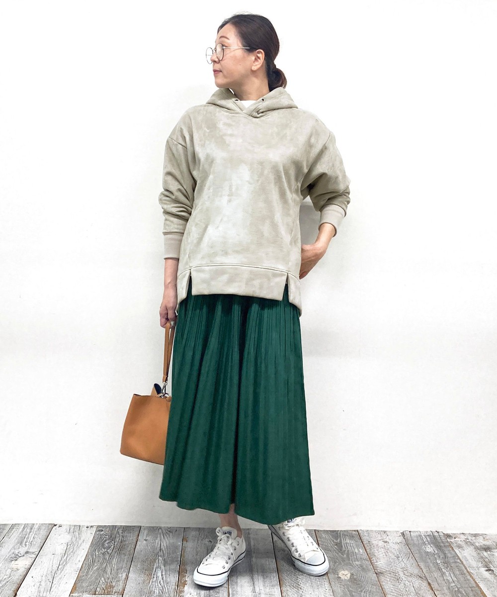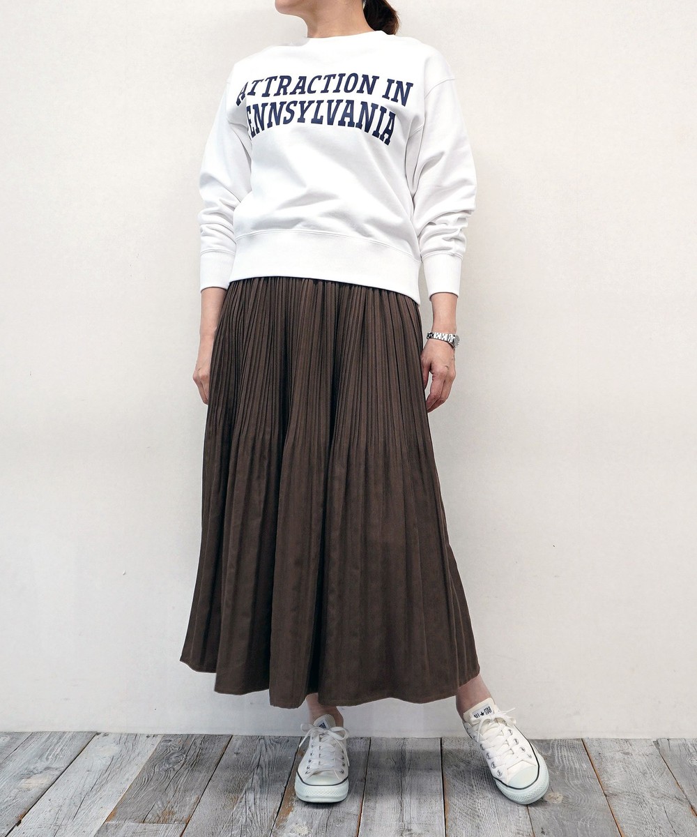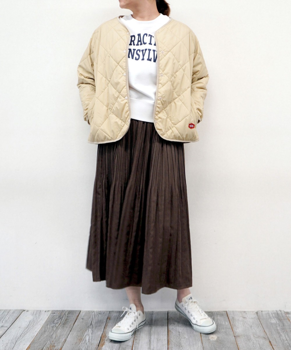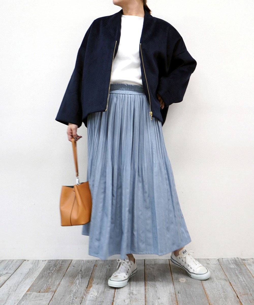 極細の畝が特徴のミジンコール素材を使用したプリーツスカートは、秋の気分を盛り上げてくれるアイテムになること間違いなし。