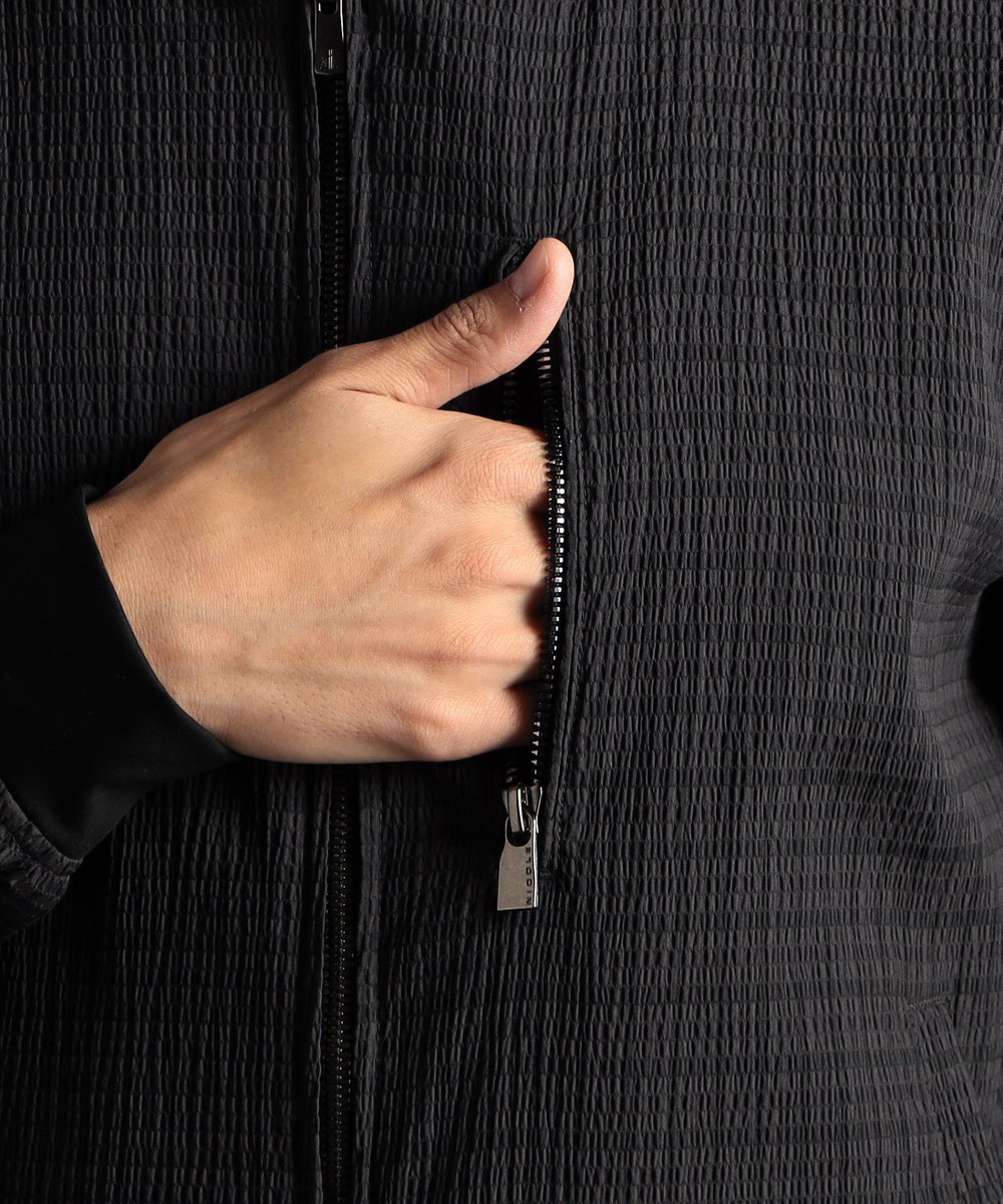 超軽量に仕上げたサッカー素材を採用。撥水機能を持つPfc Free(フッ素化合物未使用)のサスティナブル素材です。