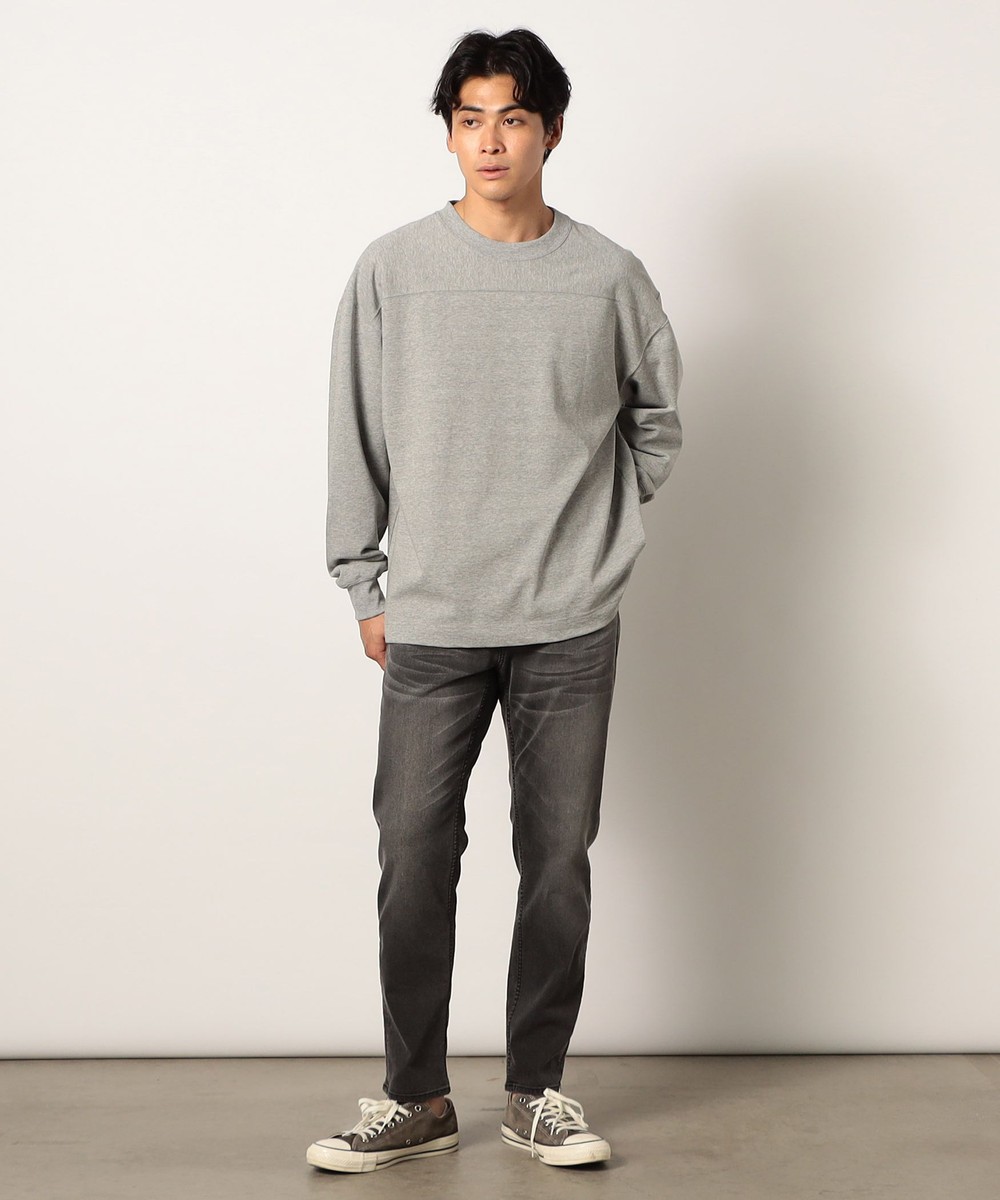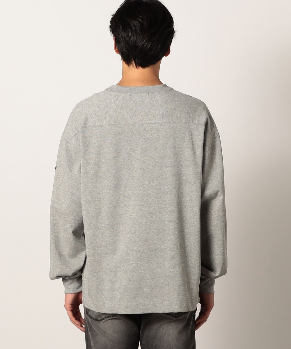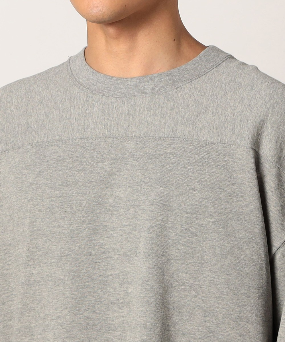 ゆったりとしたサイズ感でフットボールTシャツをイメージした切り替えを前後に入れてアクセントにしています。