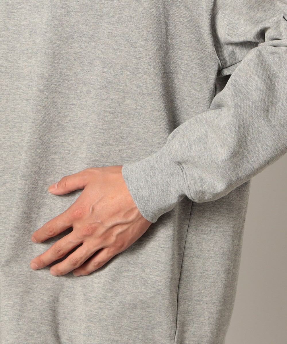ゆとりのあるサイズ感で生地がしっかりしているのでヘビーウエイトのTシャツのように立体感のあるシルエットになっています。