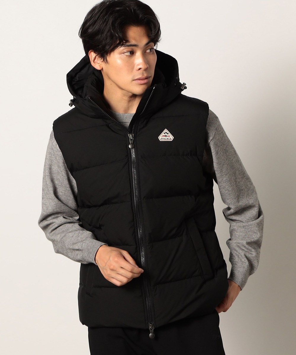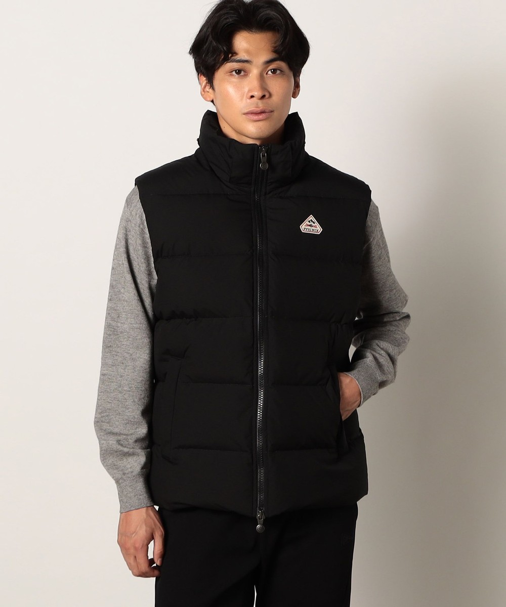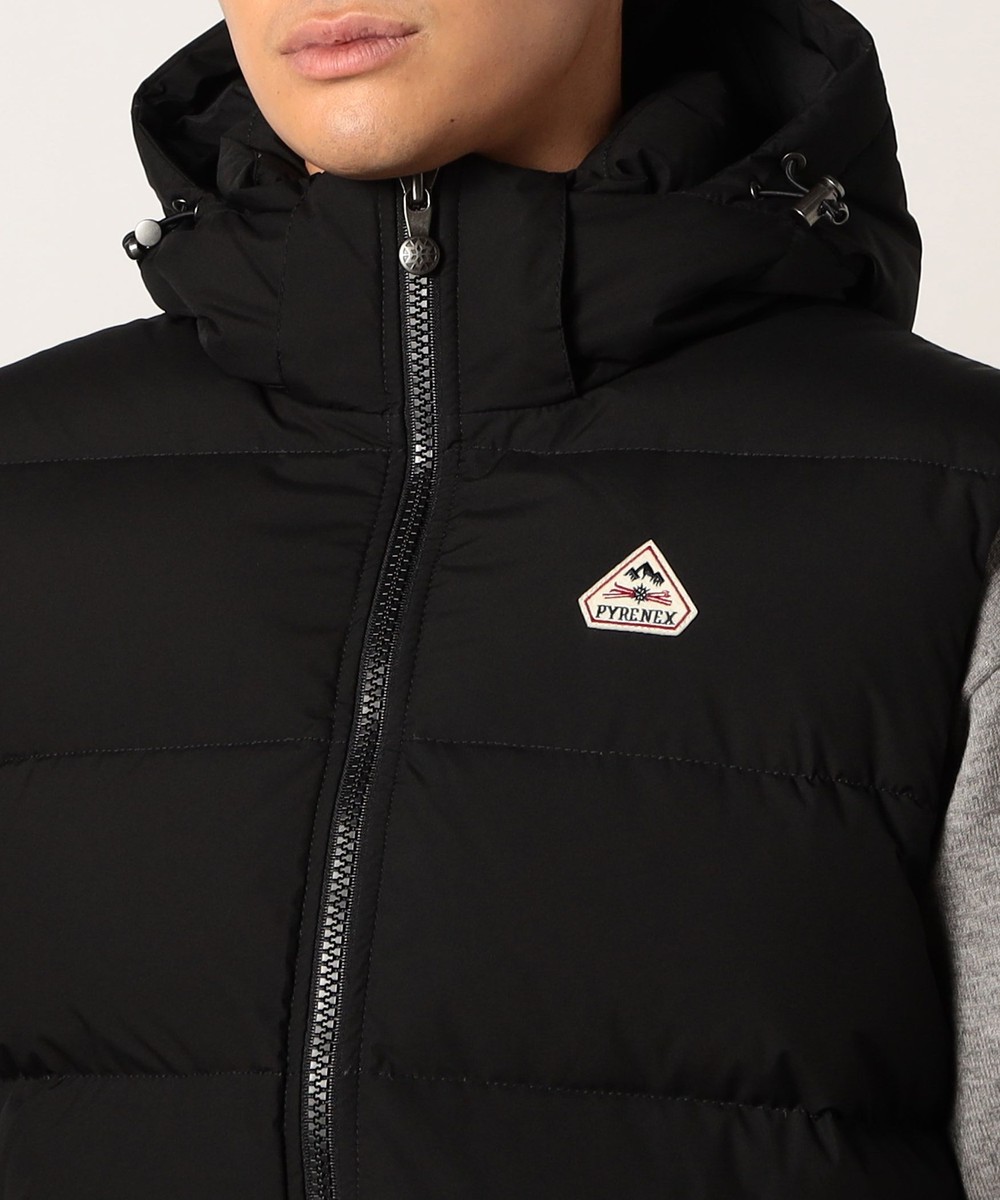 ジャケットタイプと同様に細めのピッチでキルトステッチを前面に施しシャープに仕上げたヒップレングスのベストで、フードが着脱可能なシンプルなデザインはフランス本国でもベストセラーとなっています。