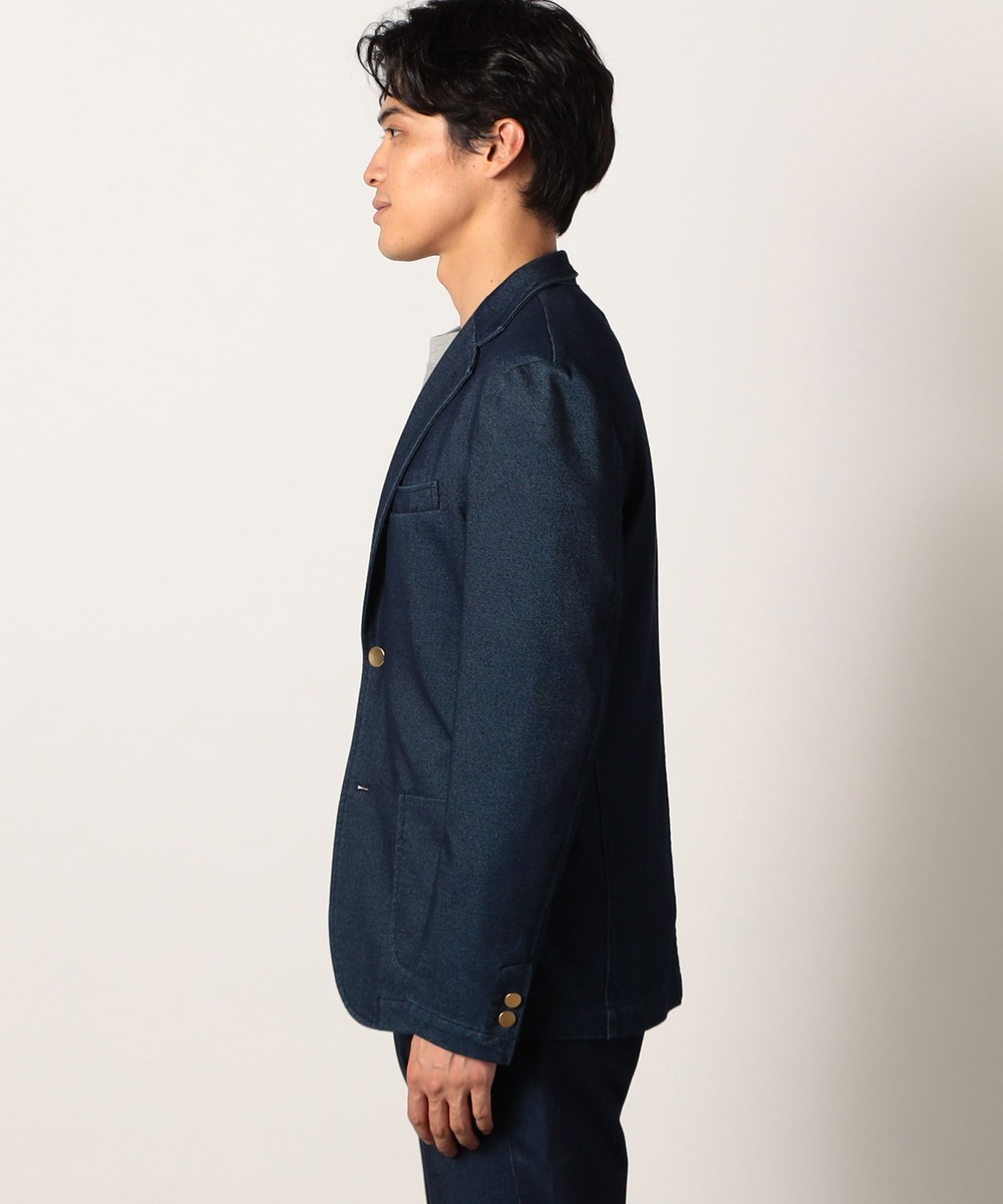 ウエストの絞りを少なくして、ラペルも少し太めにしたブレザーのようなシルエットにしています。