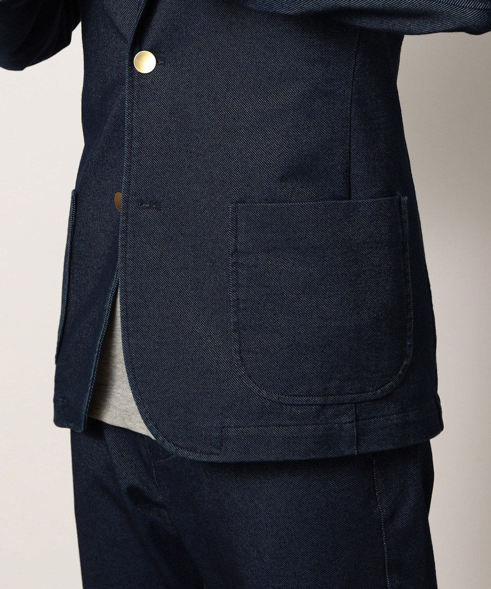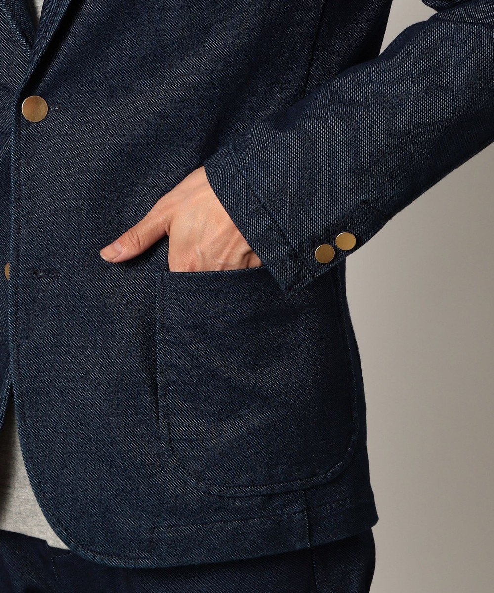 ウエストの絞りが少なくトラッド雰囲気を取り入れた段帰りの3つ釦、パッチポケットでカジュアルでも仕事使いでも使い分けられるの雰囲気が特徴です。