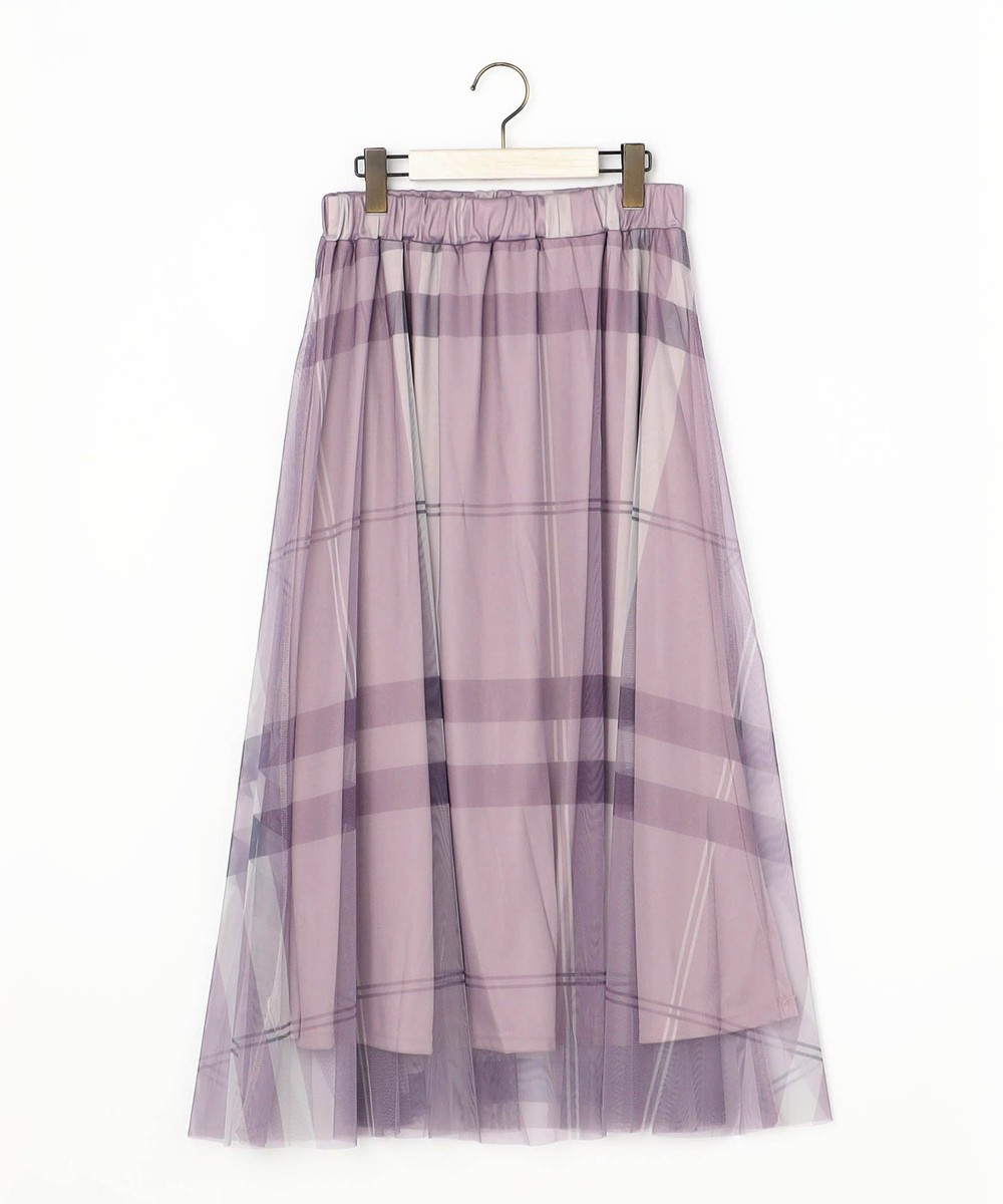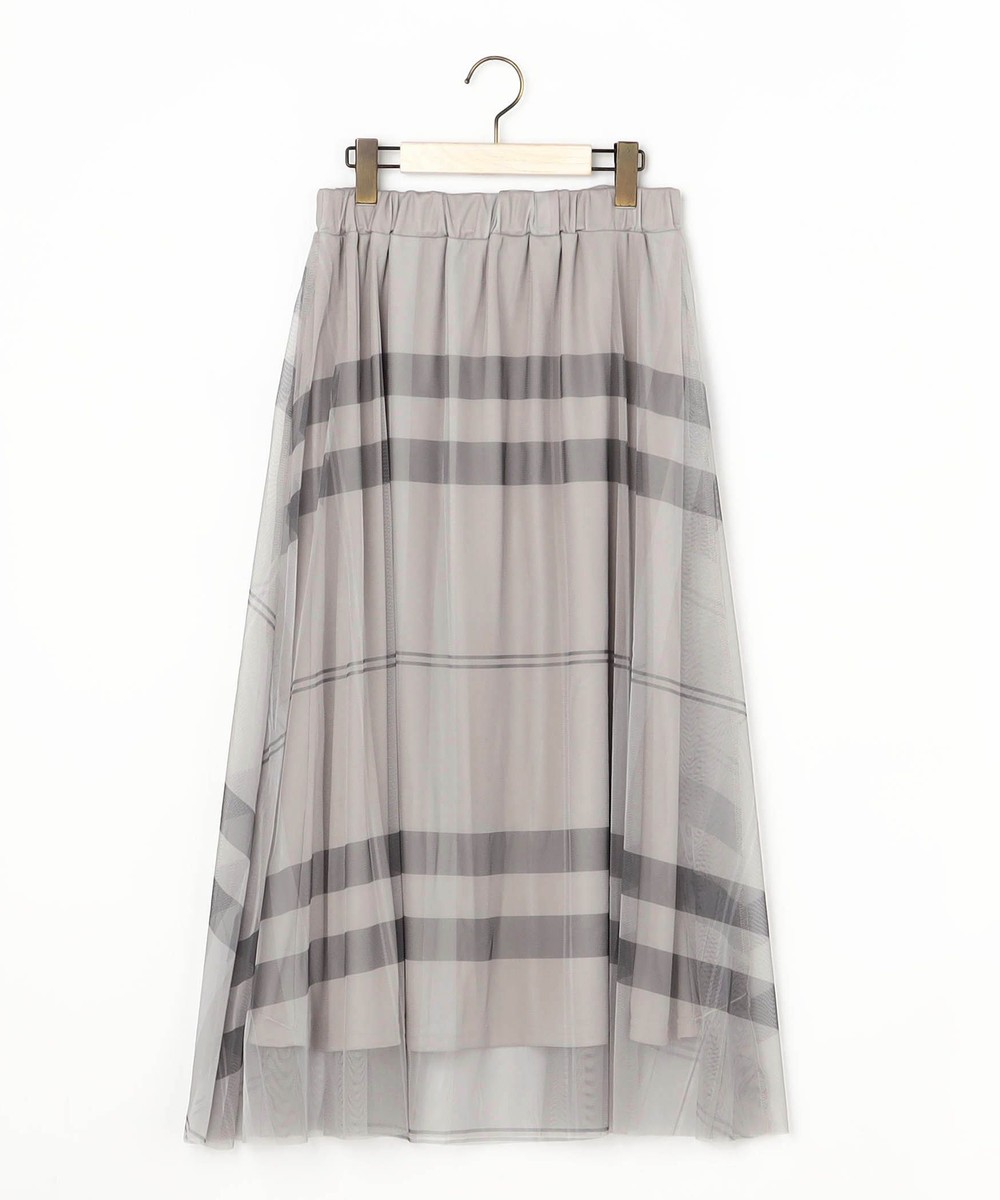 チュール素材にチェック柄をプリントしたロングスカートです。