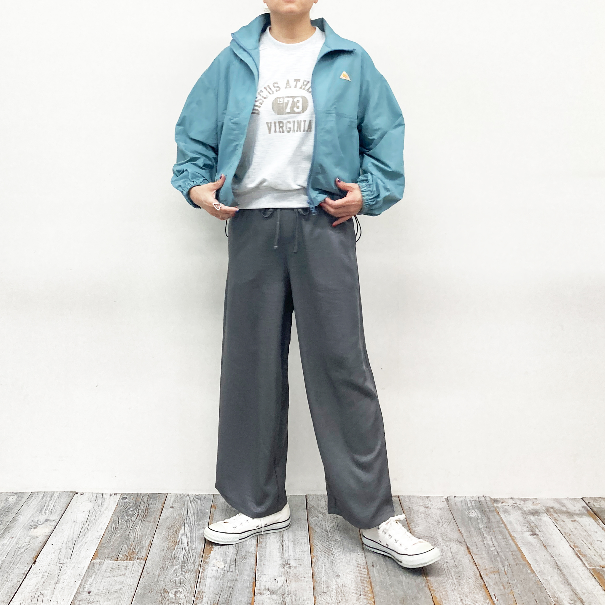 *デニムやワイドボトムと合わせたシンプルなカジュアルスタイルがおすすめです。