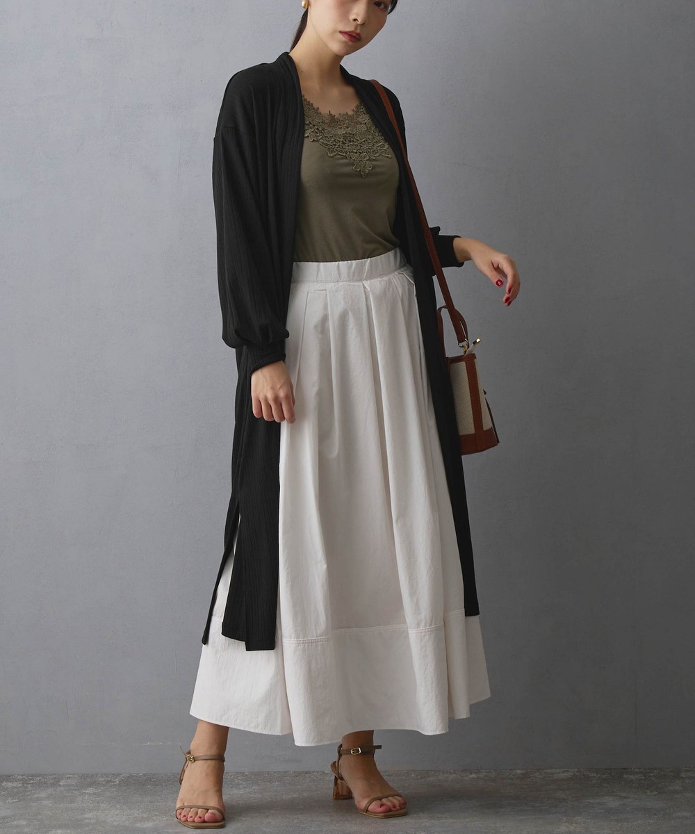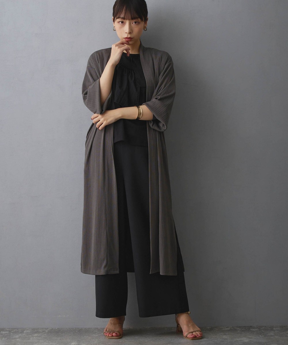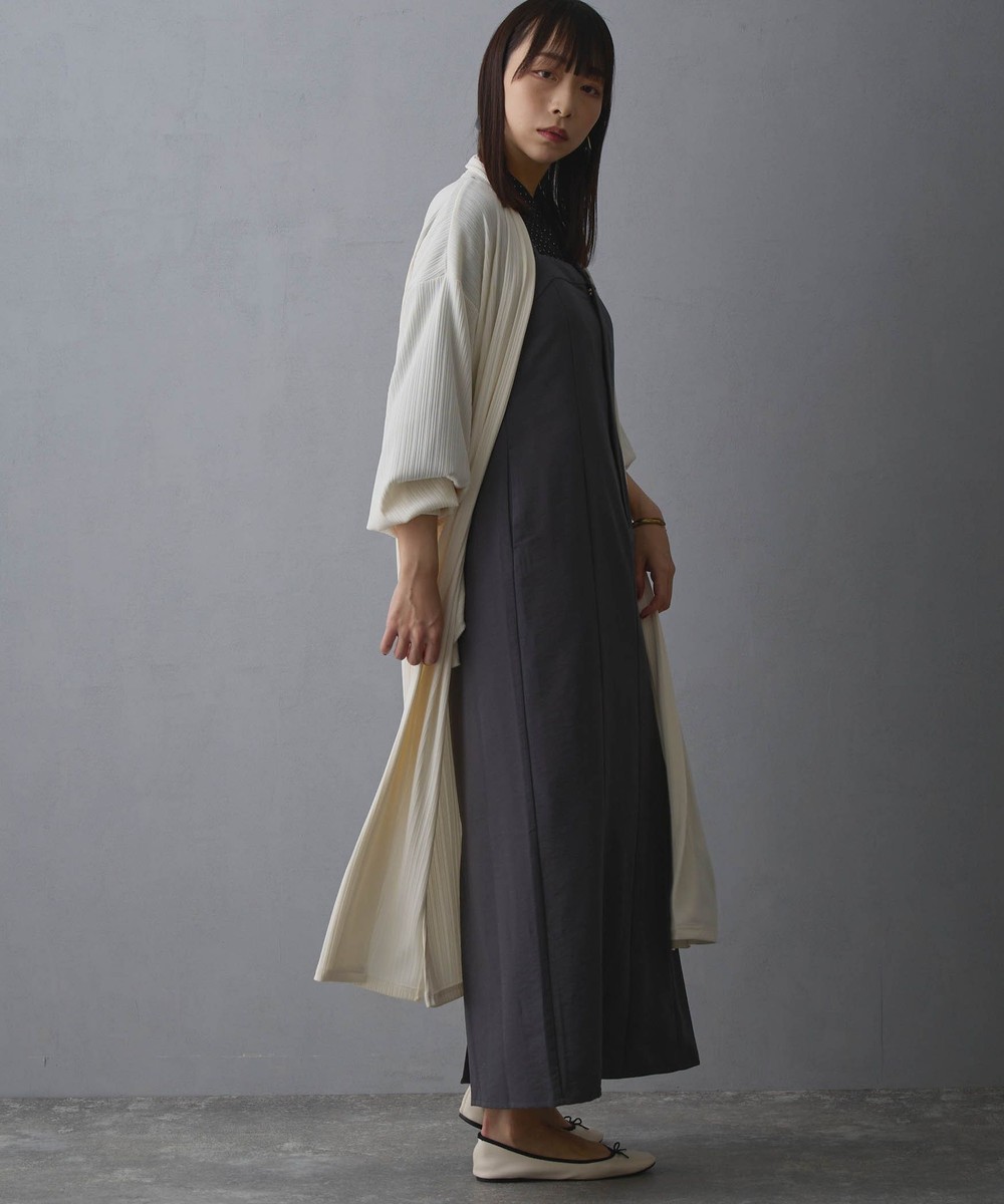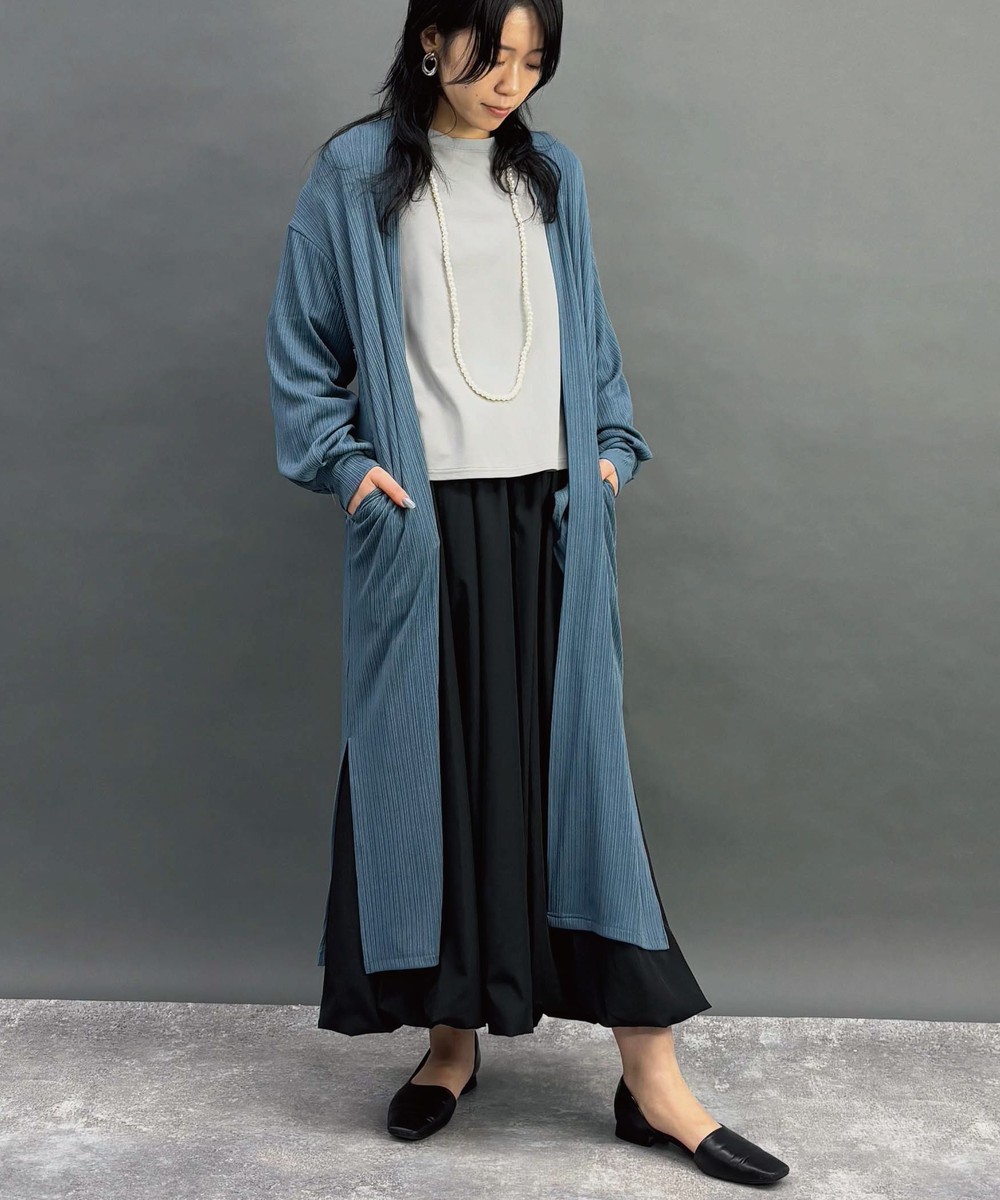 人気のランダムリブ素材から今年もロングカーディガンが登場。従来はチュニック丈でしたが、トレンド感のあるロング丈にして新登場です。
