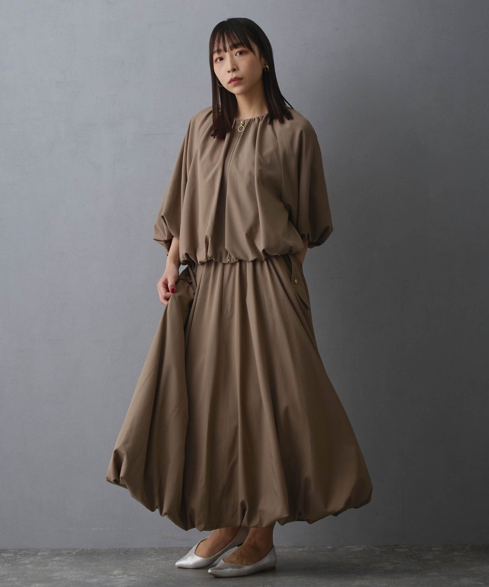 ショート丈なのでバルーンも野暮ったくならずすっきりとした印象に。