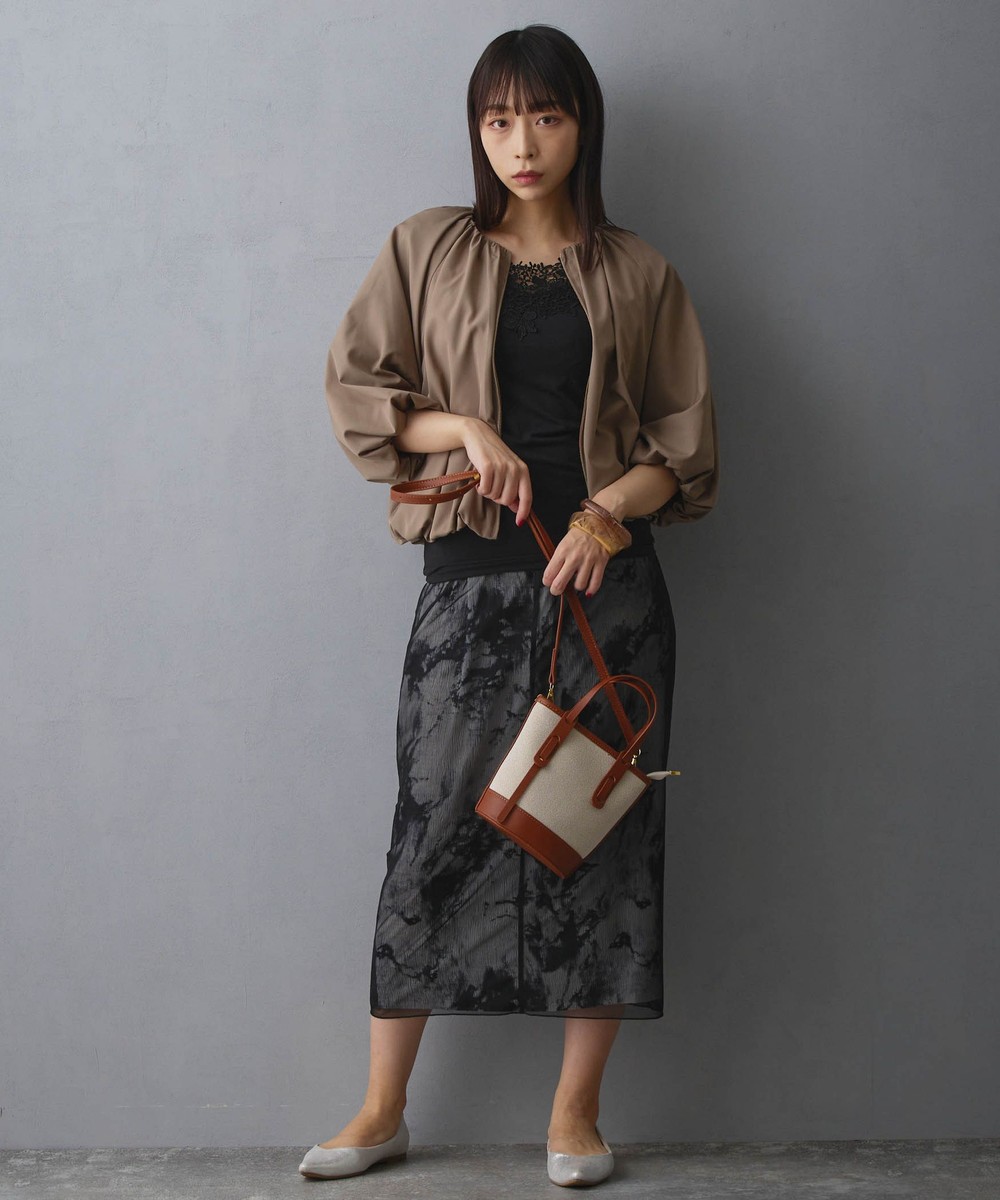 タイトスカートやストンとしたシルエットのワンピースに合わせるとすっきりした印象になります。