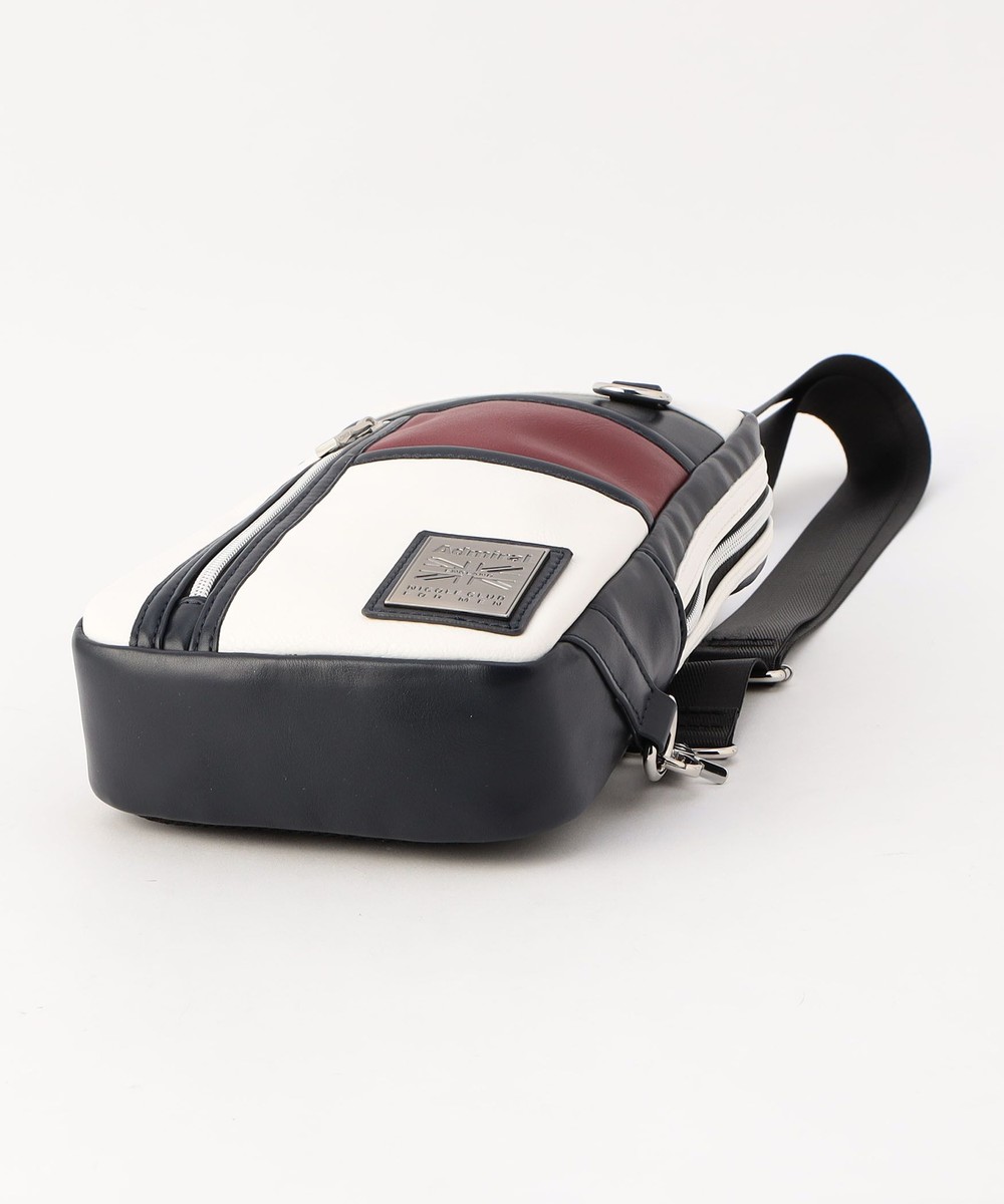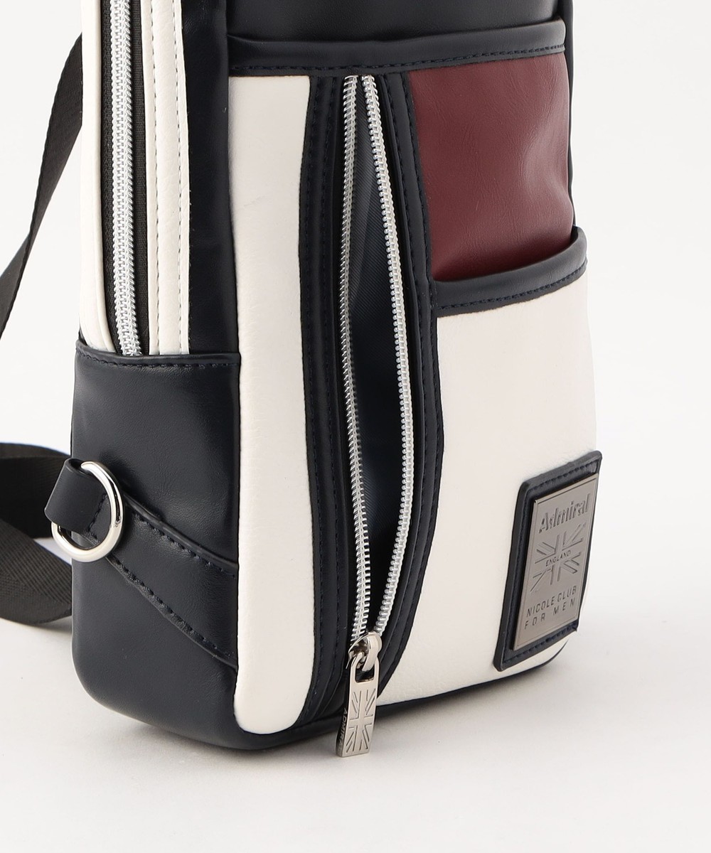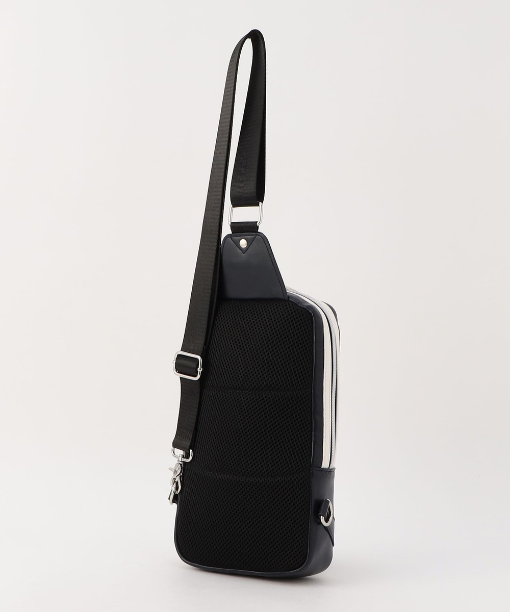 フェイクレザーに型押ししたランパントモチーフとマットなカモフラジャカードがスタイリッシュな印象のアドミラル別注ボディバッグ。機能性とデザイン性を兼ね備えたバランスの良い切替えアウトポケットがディテールポイント。メインポケットはファスナー口を大きめに設定し使い勝手も申し分ない仕上がりです。フロントに配したコラボロゴ刻印のメタルプレートも上質な雰囲気を醸し出しています。