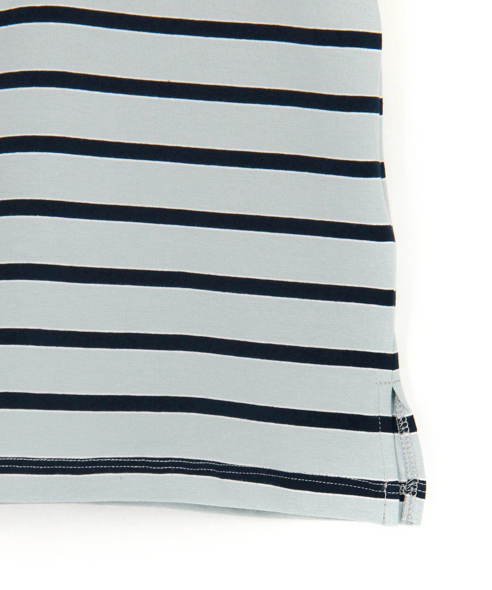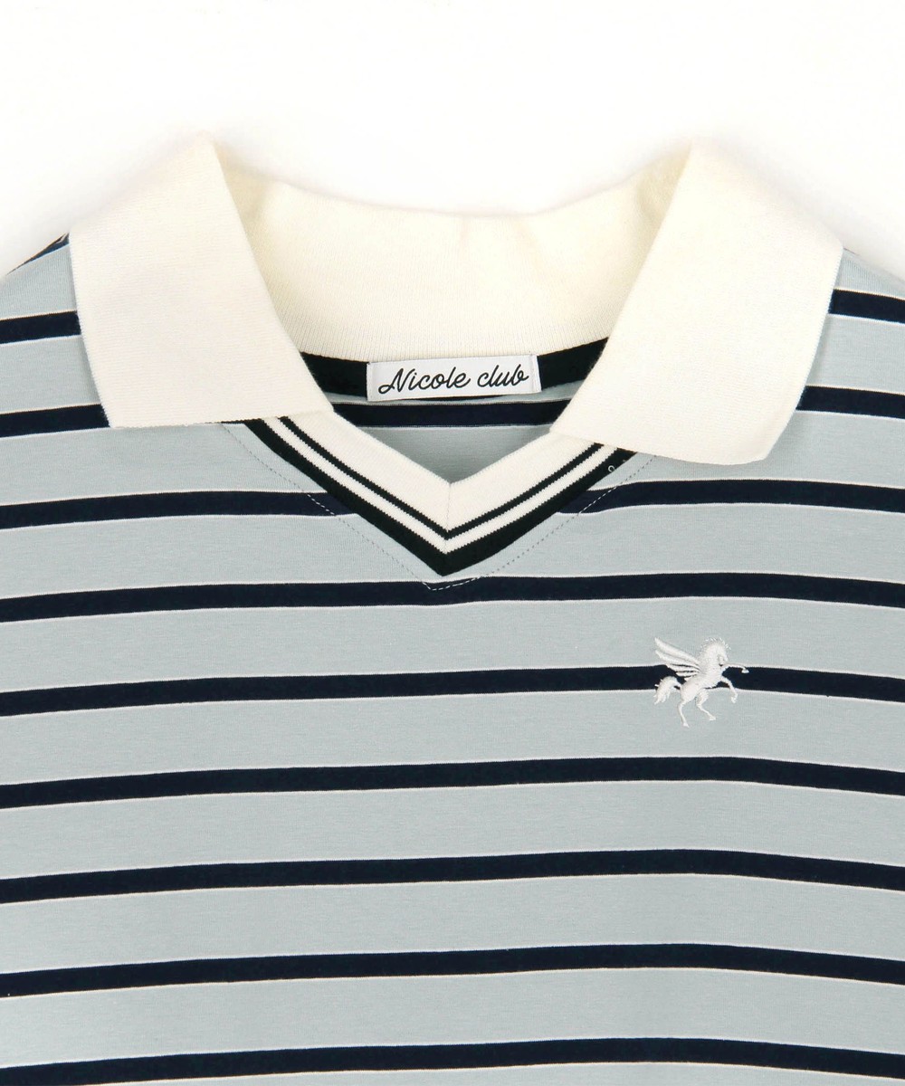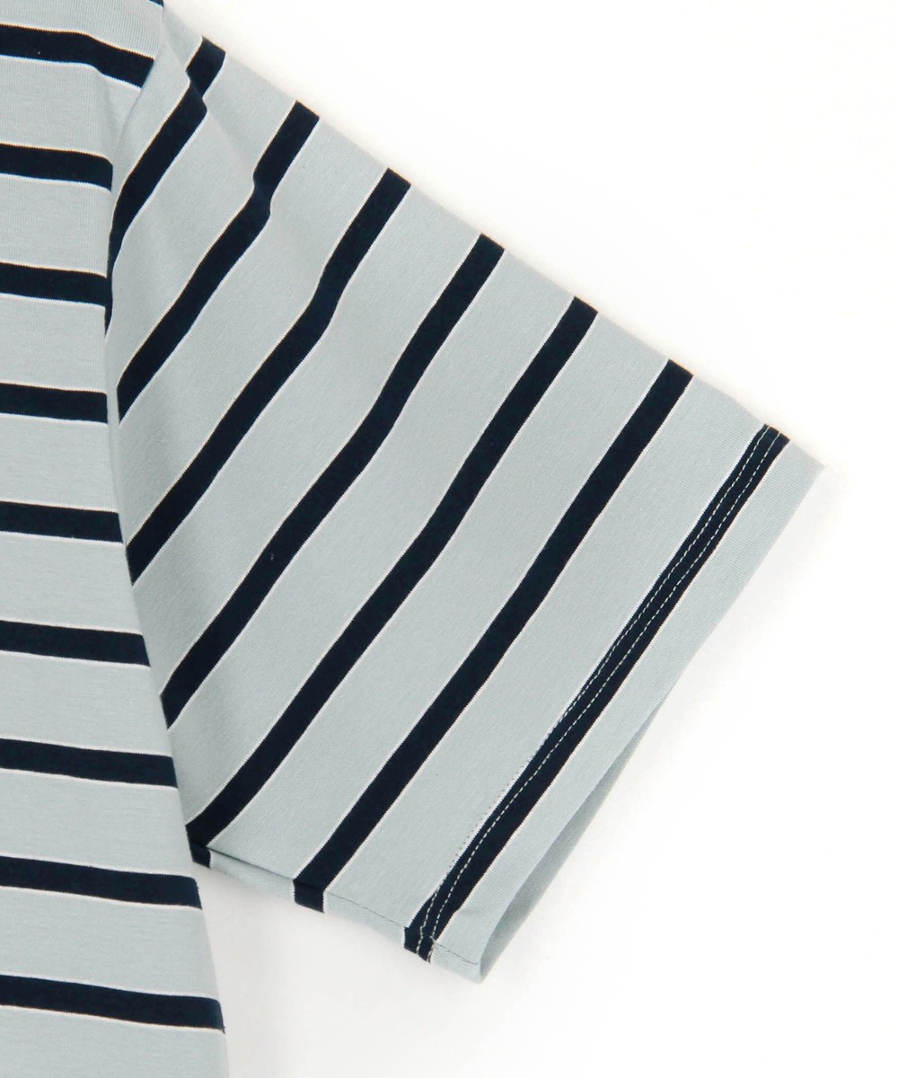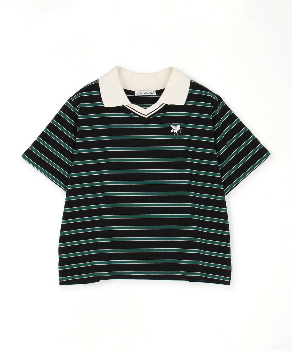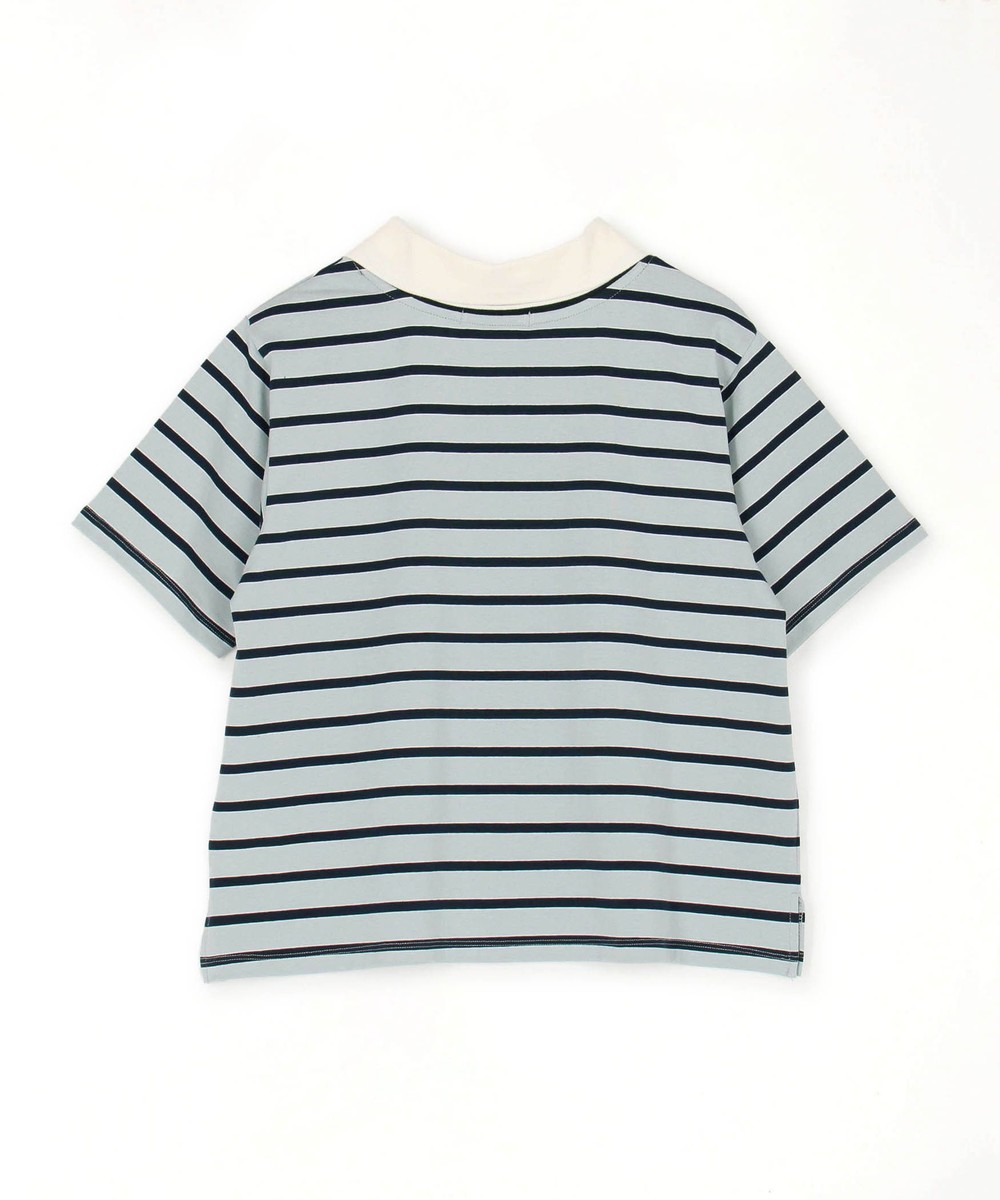 トレンド感のある衿にマルチボーダーの生地を使用したラガーTシャツ。