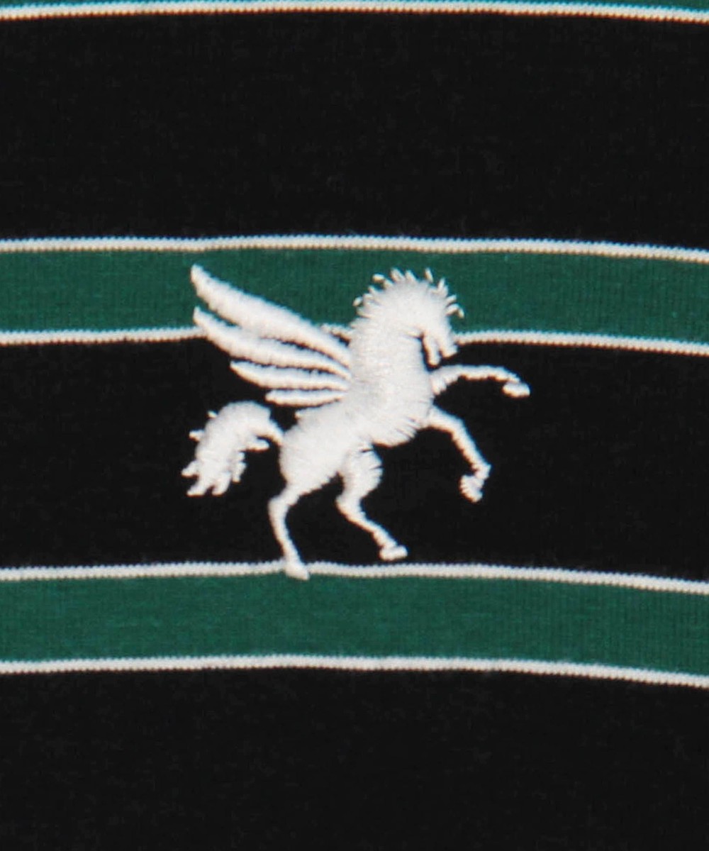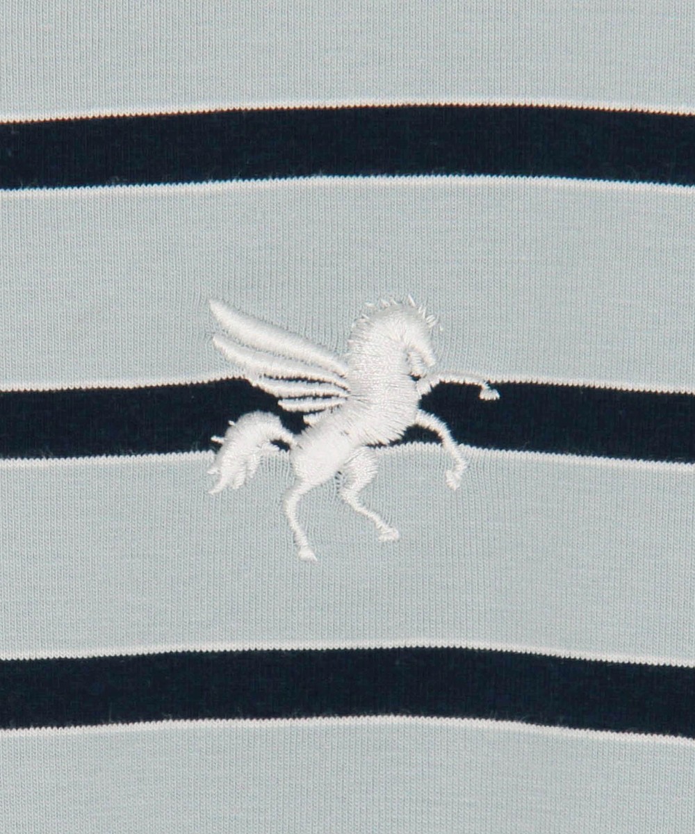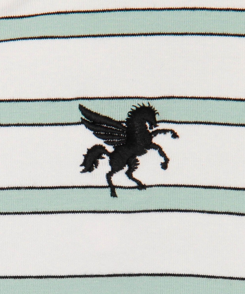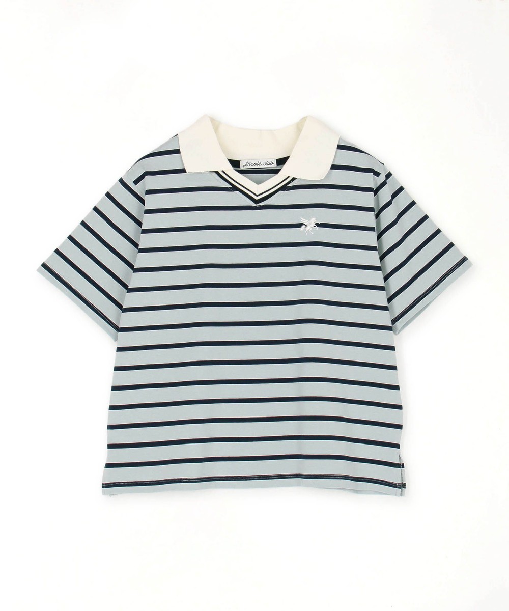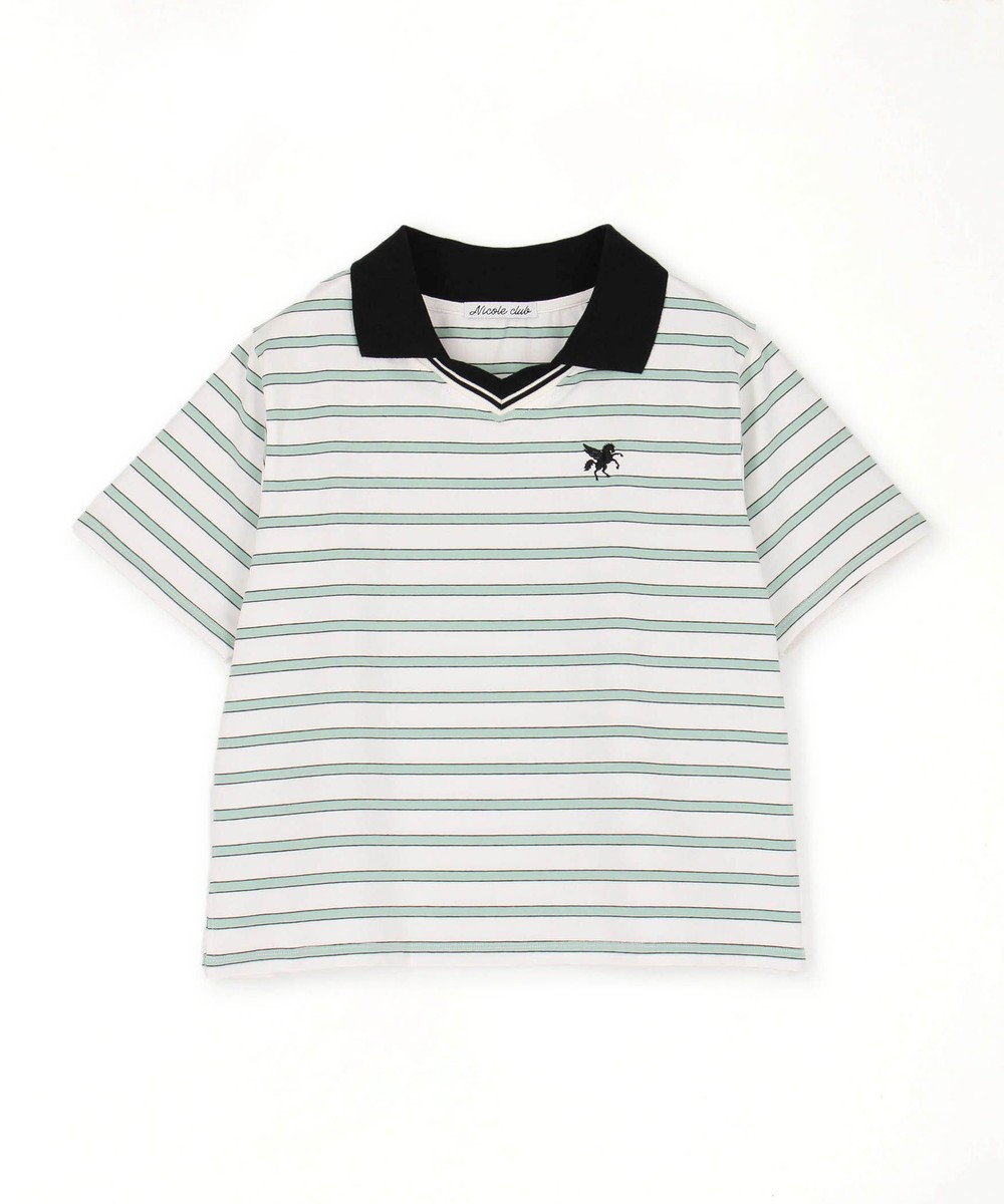 トレンド感のある衿にマルチボーダーの生地を使用したラガーTシャツ。