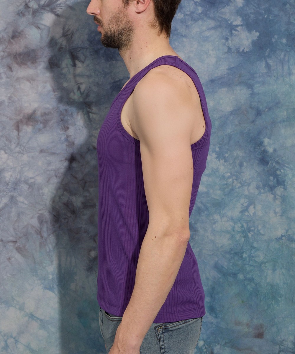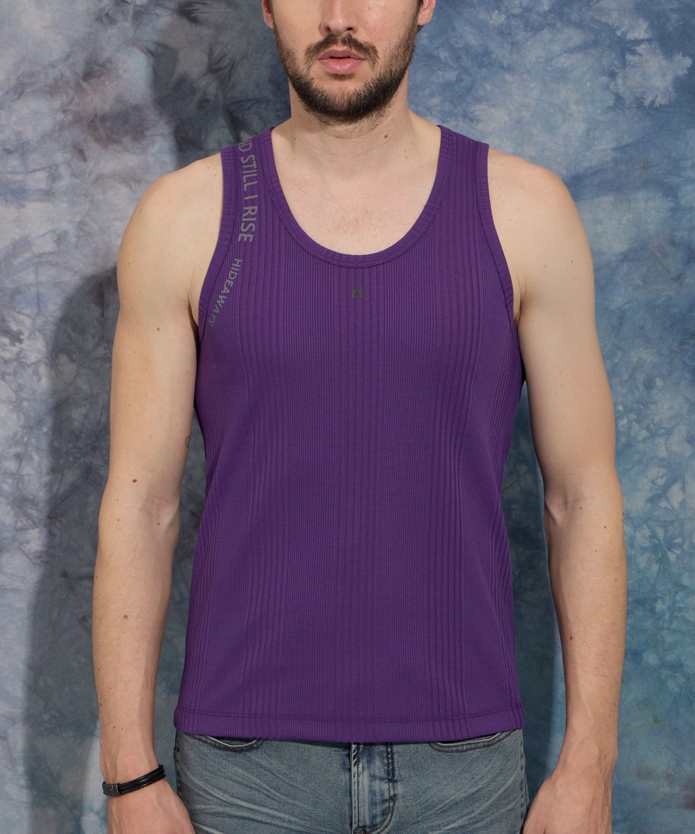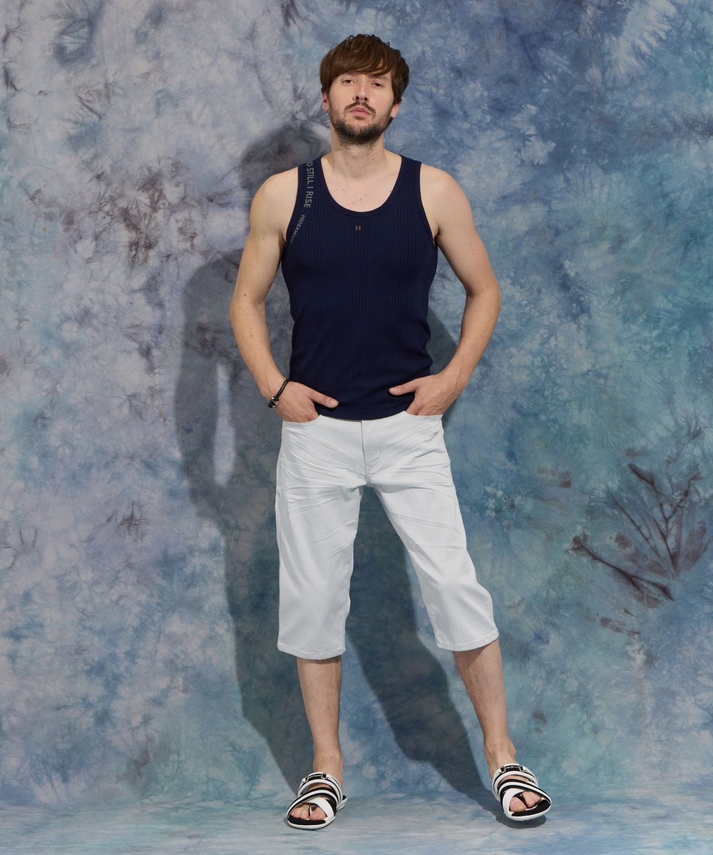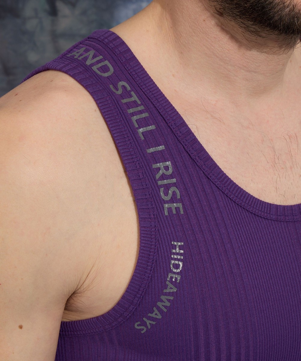 右アームホールと胸のロゴプリントがデザインポイントです。