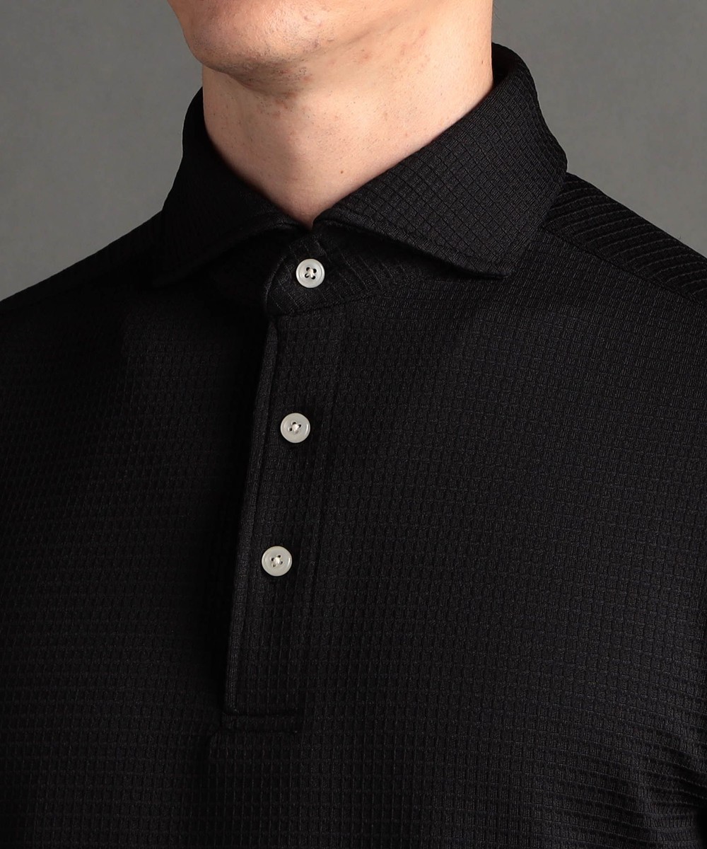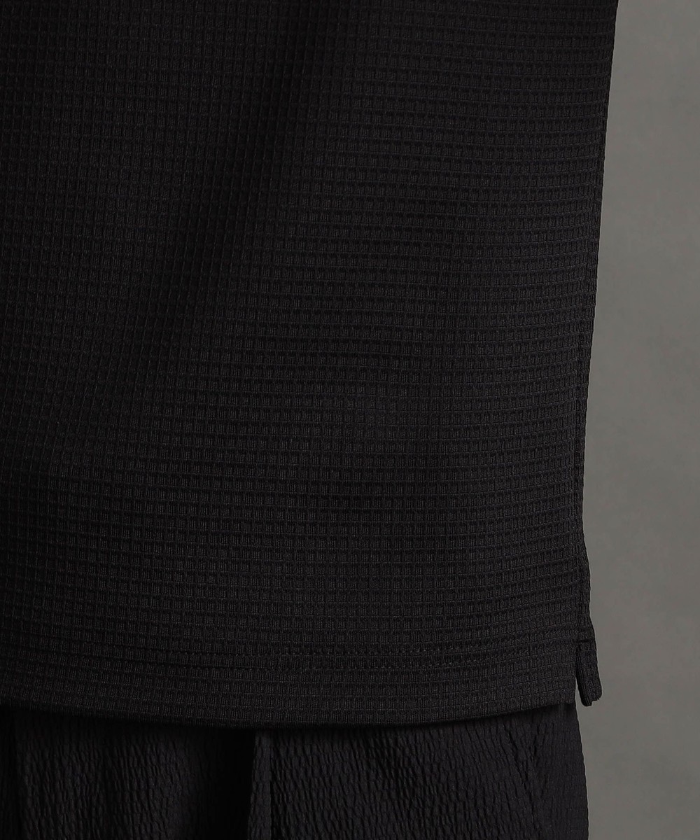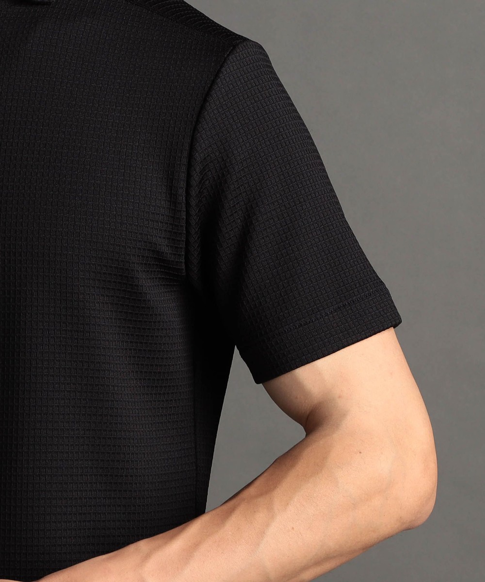 ポリエステルにポリウレタンをプラスしたワッフルニットポロシャツ。