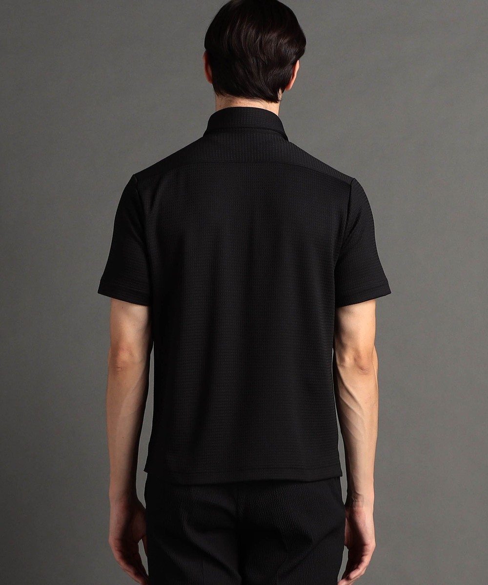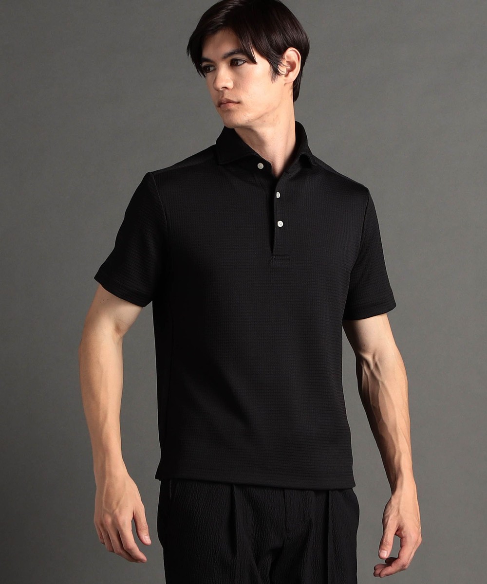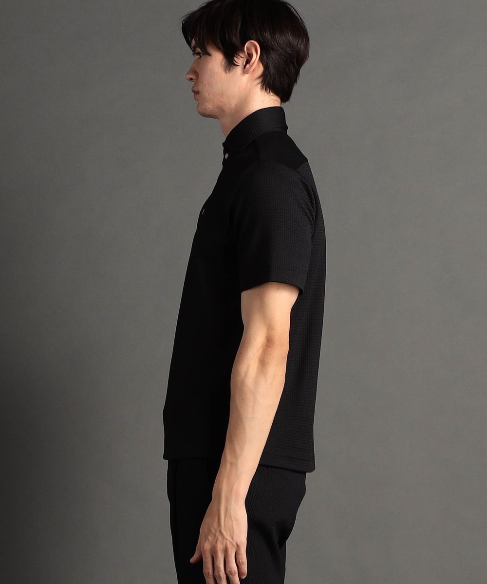 ポリエステルにポリウレタンをプラスしたワッフルニットポロシャツ。