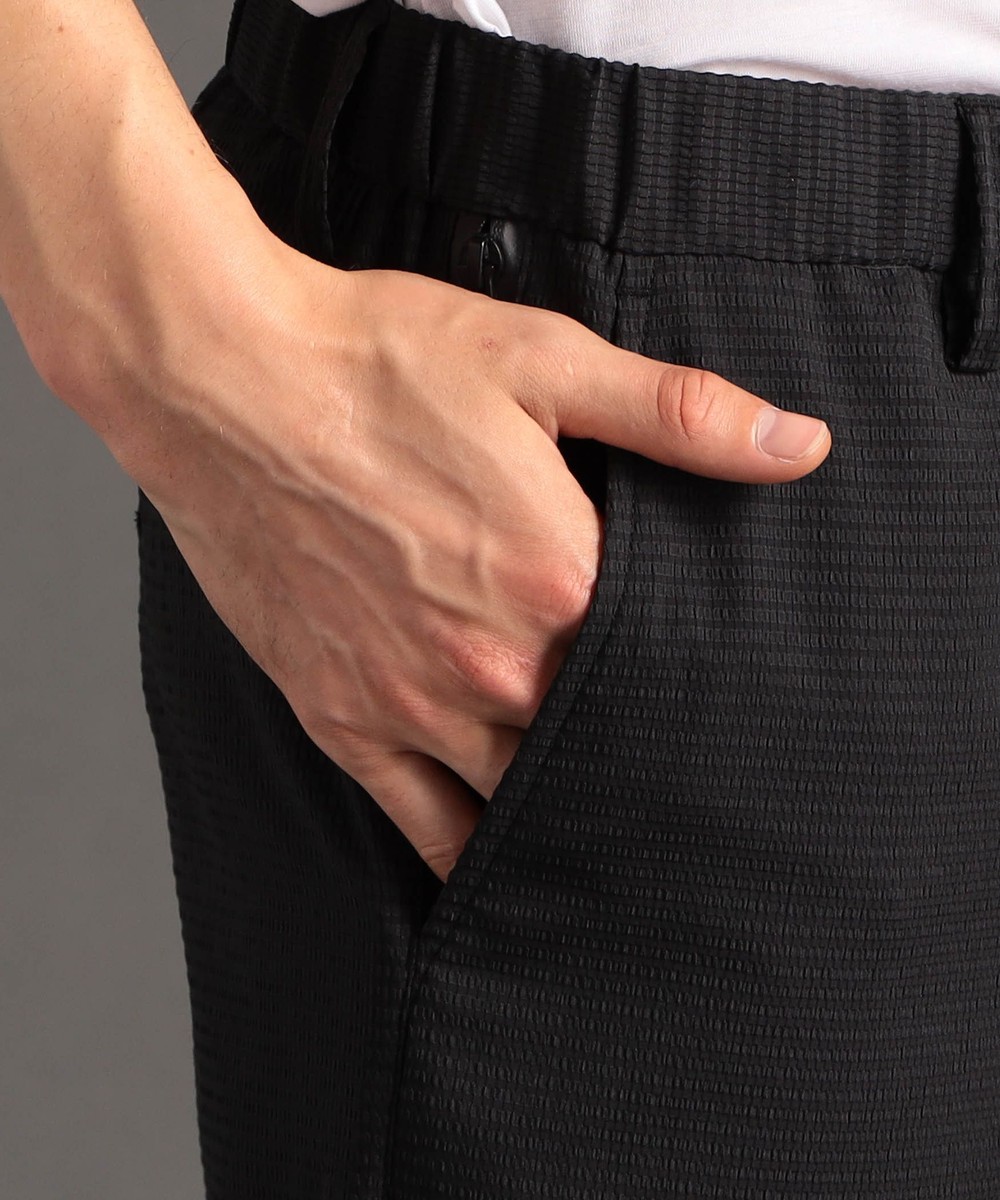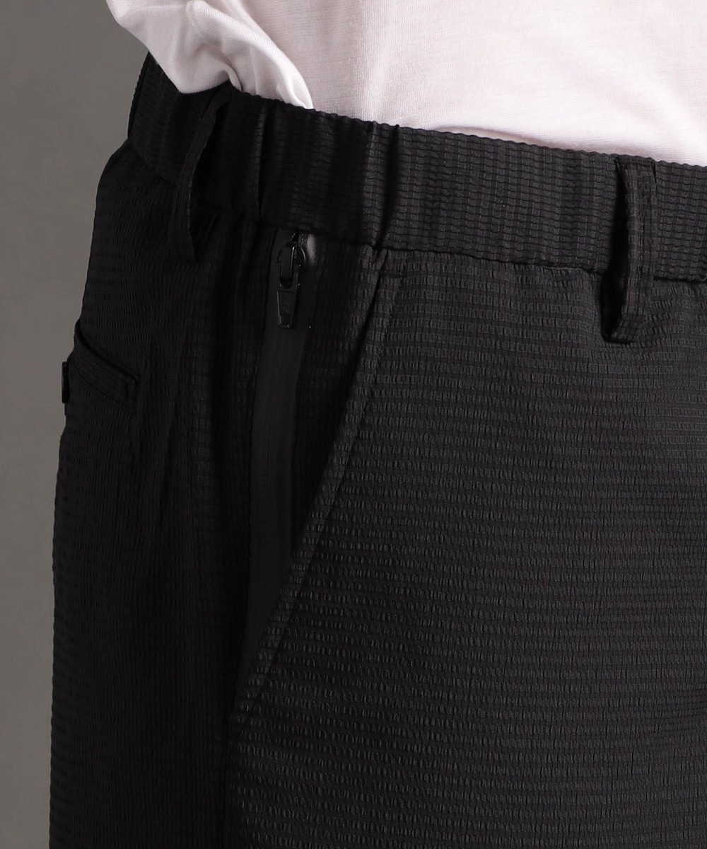 ウエストシャーリング&ドローコード仕様のショートパンツ。右脇ジップポケットでデザインアクセントを付け、ゴルフニーズにも対応した、ラグジュアリーショーツ。