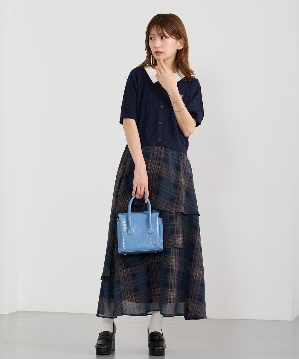 生地をたっぷり使ったレイヤードデザインとチェックが華やかな一枚。
