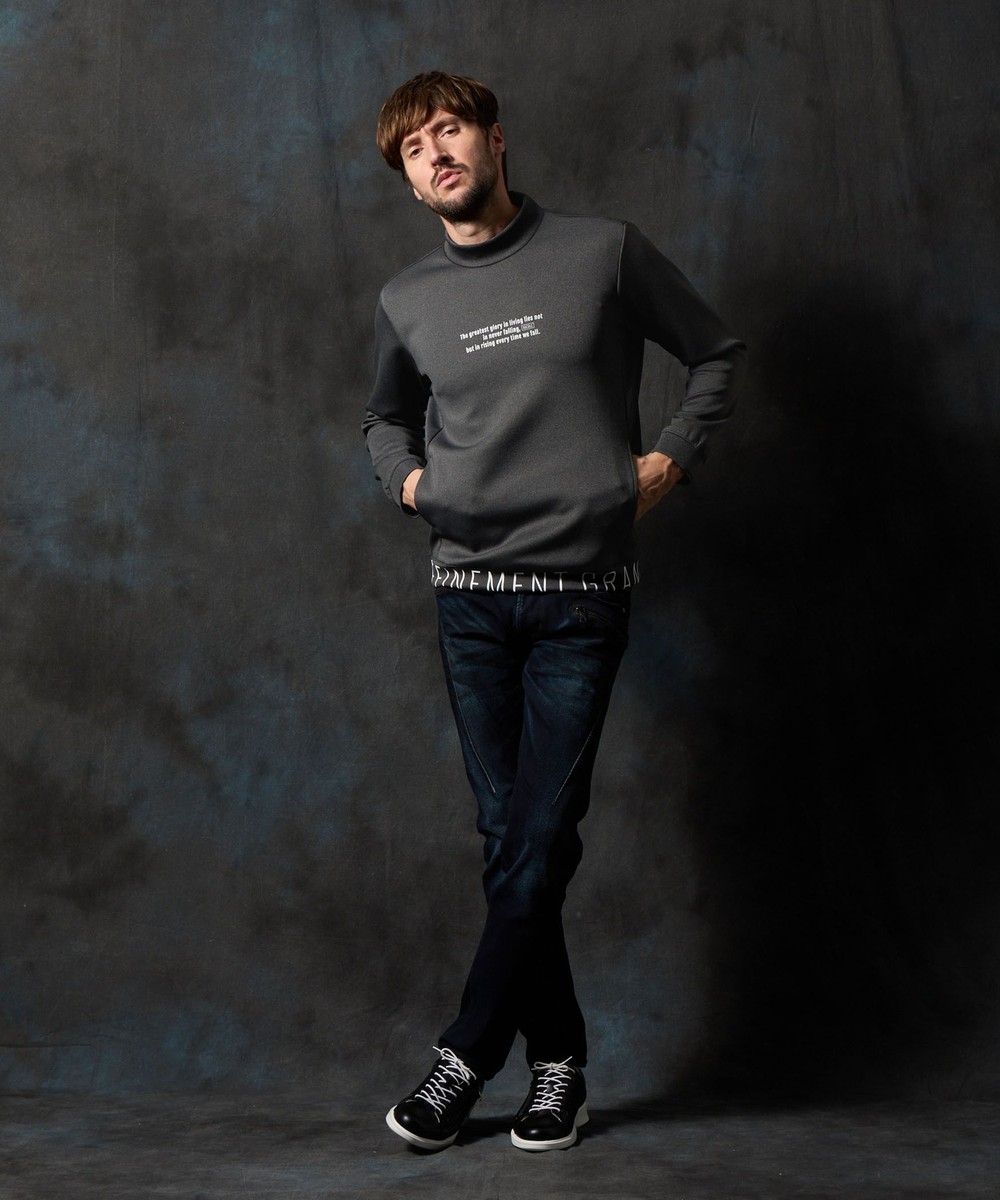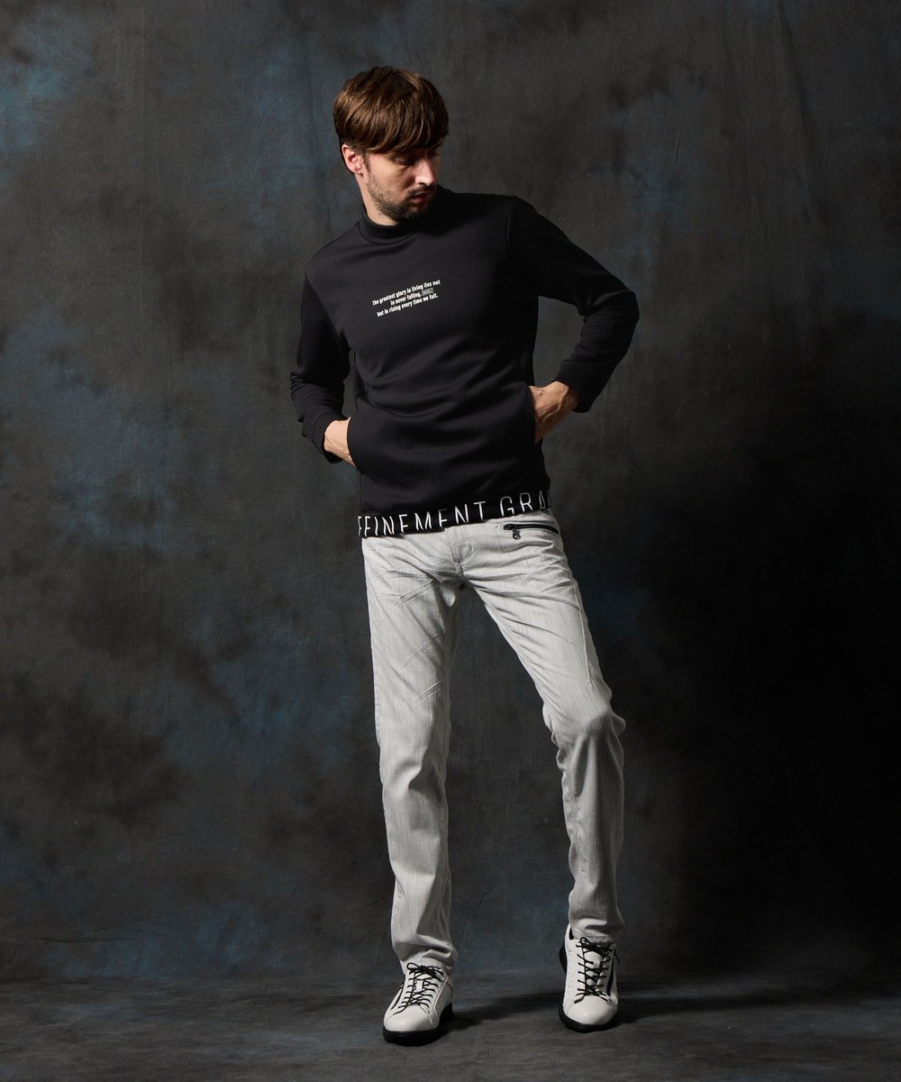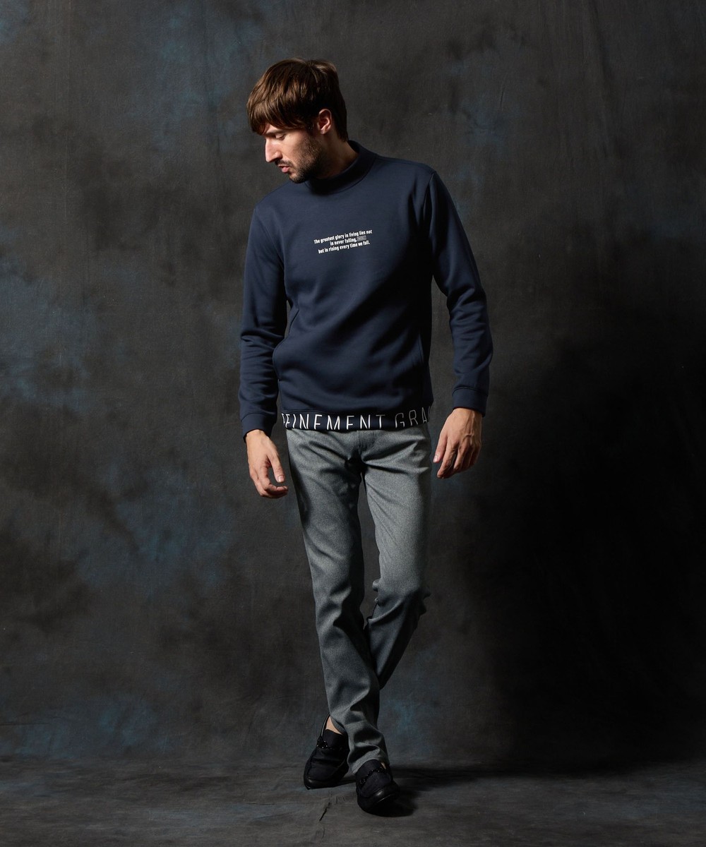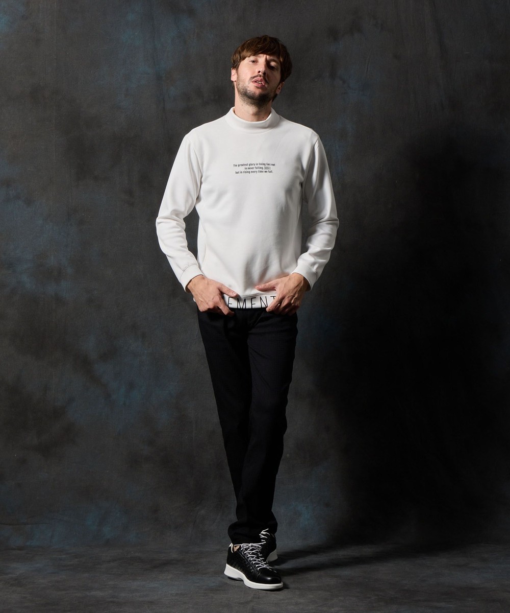ややゆったりとしたリラックスシルエットのモックネックプルオーバー。