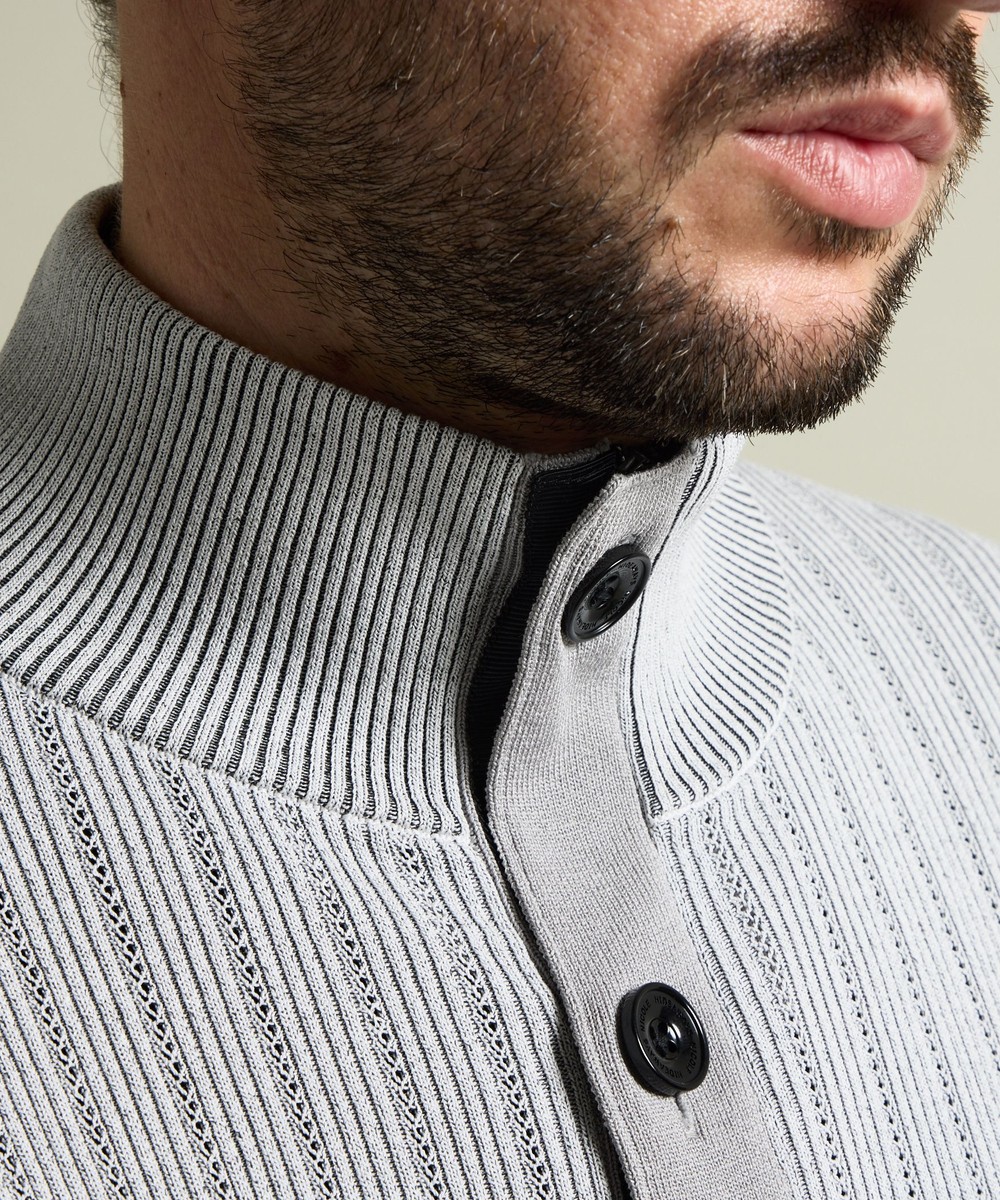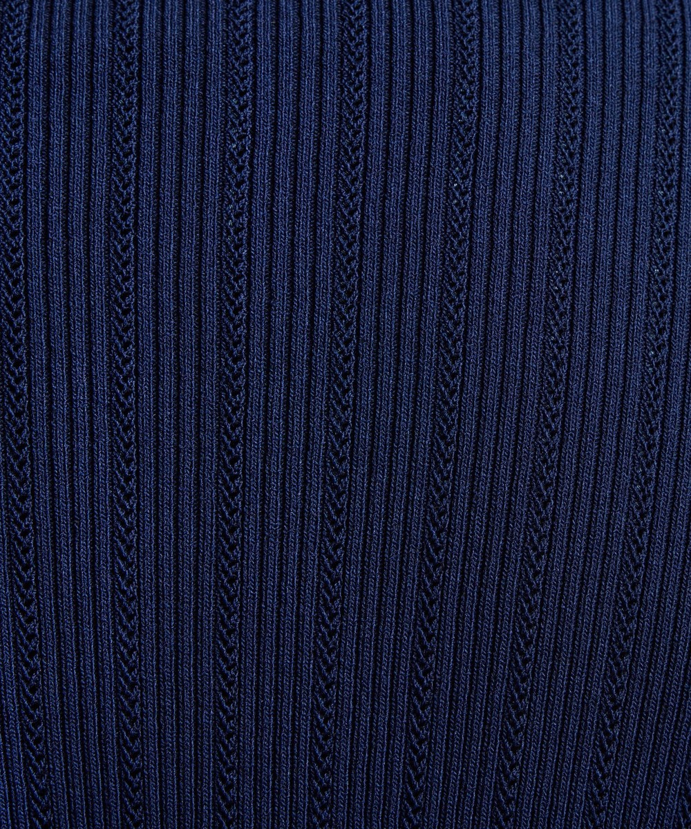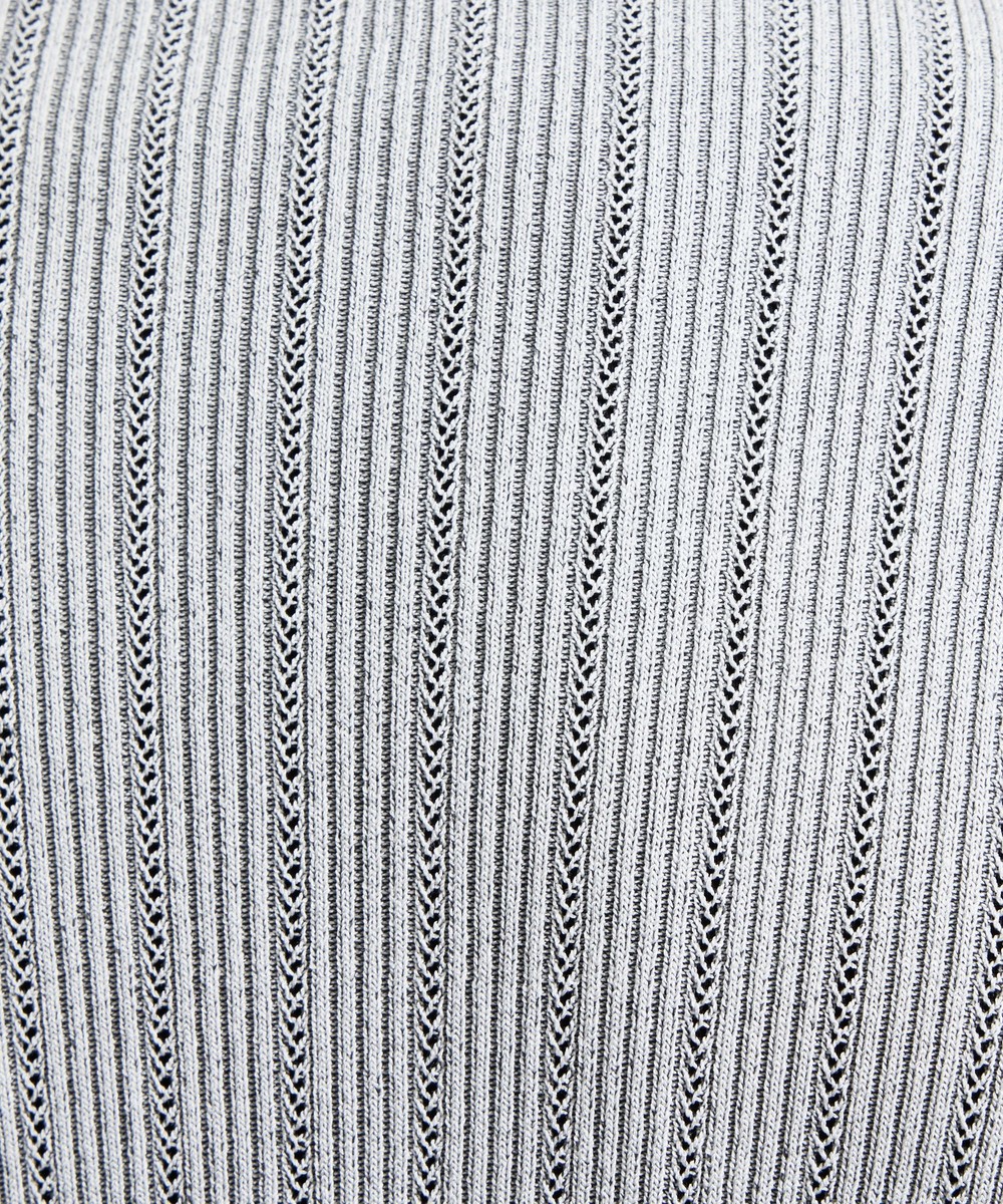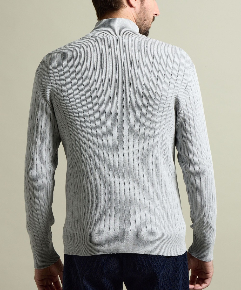 プレーティングリブは凹凸のある針抜き組織を2色で編み上げることにより、一味違う奥行き感が表現されています。